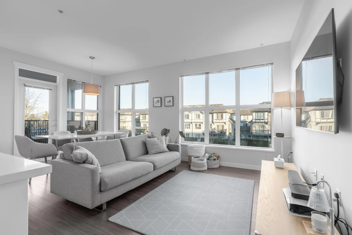 Absolutely immaculate and air-conditioned NE CORNER 3 bedroom condo w/ 2 full bathrooms and 2 full-sized EV SxS parking spots! With 1120 SF of spacious living, this home features an open gourmet kitchen w/ island, quartz counters, KitchenAid & Fisher Paykel SS appliances, new Fotile hood fan, brand new LG washer/dryer, laminate floors, upgraded LED pot lights in baths, window screens and great covered balcony. Comes complete w/ 2 lockers and geothermal heat pump for heating and cooling. Residents have access to the “Trafalgar Club” with a private lounge, gym, pool tables, ping pong, music & meeting rooms. All this in a super central loc that’s just steps to Walmart, restaurants, banks, shops, parks and buses or a quick drive to Aberdeen, Yaohan, Lansdowne or Richmond Centre malls.