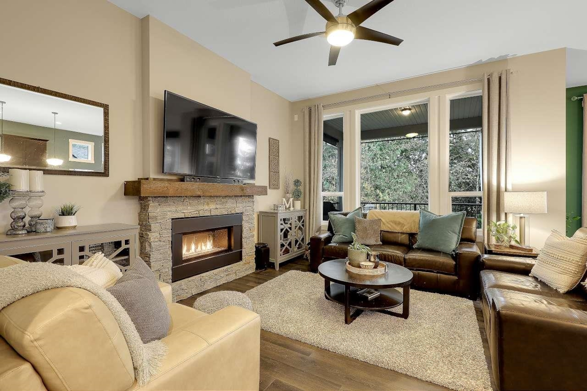 Immaculate executive home with over 3,000 sqft on three levels, suite potential, double garage, and a private yard backing onto greenbelt. Ideally perched high on a cul-de-sac beside Nelson Peak Park. Quality-built by Portrait Homes with warranty to 2027. Features a fully finished basement with separate entry and suite rough-ins. Main level offers an inviting double-height foyer, open concept living, over height ceilings, chef’s kitchen w/ premium appliances, large island, stone counters, gas FP, laminate floors, laundry room, and central vac. Upstairs has 3 spacious bedrooms plus an office/den (optional 4th bed), including a large primary with walk-in closet and spa-like ensuite. Basement includes a rec room, a bedroom, full bath, W/D rough-ins, storage, and driveway parking. A must see!