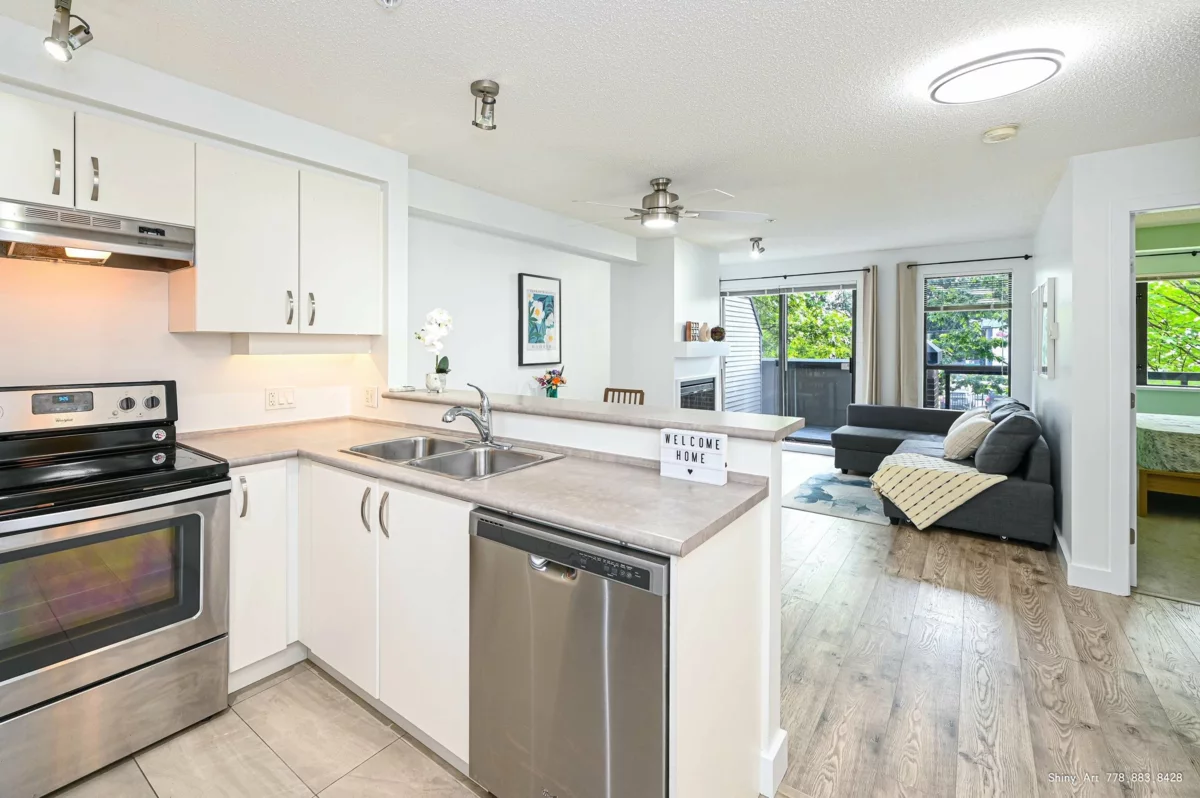 Discover this beautiful 1-bedroom, 1-bathroom unit with a spacious den, ideally located next to Gateway Station and Nesters Market. This unit features modern amenities such as laminate flooring, stainless steel appliances, bright LED lighting, and fresh paint. Enjoy the cozy ambiance of the electric fireplace and relax on the sizable patio. The building offers fantastic amenities, including a fitness facility, hot tub, and clubhouse. Located in a thriving neighborhood, you are only steps away from shopping malls, recreation centers, diverse restaurants, community parks, reputable colleges, and more. Perfect for first-time buyers and investors alike, this property includes one parking space and one storage locker. Call today to schedule your viewing! Open House Aug 25th, Sun 2-4:00pm