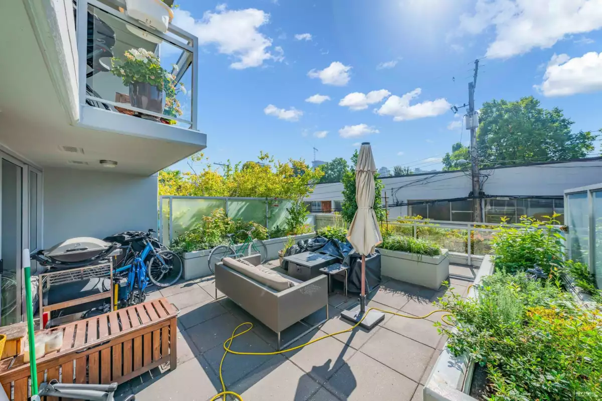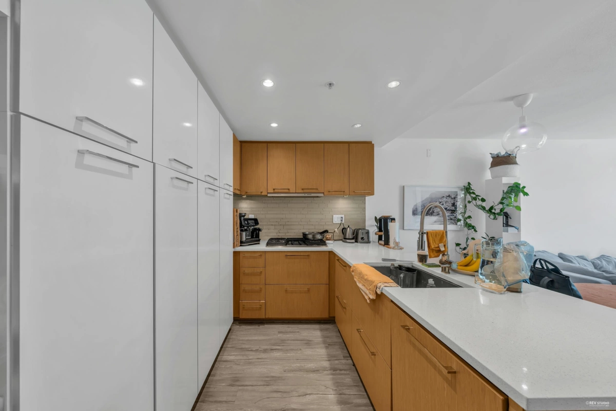 "Mantra" in False Creek presents all the desirable opportunities for entertainment, shopping & dining available on West 4th Ave, Granville Island & Kits beach which are all within walking distance. The living space is magnified by a huge patio which is an oasis of tranquility and makes it feel like a penthouse suite. Built by reputable Cressey Development, the building includes energy efficient geothermal heating and air conditioning which are included in the strata fee. Beautiful appliances with gas range top, built in wall oven and a wine cooler under the quartz countertops. TV niche with storage cabinet & a full height custom pantry wall. Ample space with a walk-in closet, large storage room in addition to the den of the bedroom. Come see it