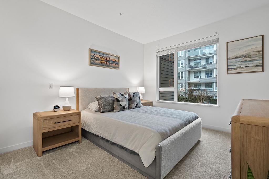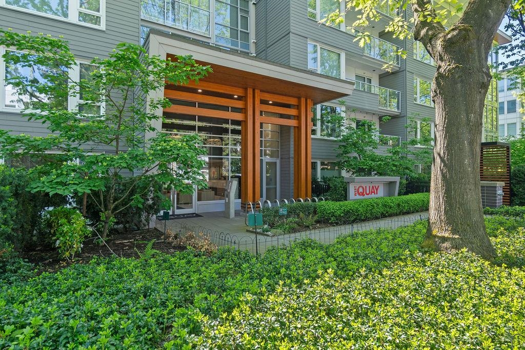 Welcome to WEST QUAY in the heart of Lower Lonsdale. This bright 2-bed, 2-bath with a superior layout features a functional layout with 9-ft ceilings, oversized kitchen, quality finishings, and radiant in-floor heating. Updates include new carpet in the bedrooms, new-style closet organizers, and a glass shower door in the main bathroom. Courtyard and water views from your private patio. Enjoy a spacious primary suite with ensuite, in-suite laundry, stainless steel appliances with gas stove. Steps to the SeaBus, transit, waterfront, Spirit Trail, The Shipyards, Lonsdale Quay, restaurants, shops & services. West Quay amenities include gym, bike room, social lounge, elevator & wheelchair access. Includes 1 parking & storage. Open House Sunday Jan 25 2-4PM