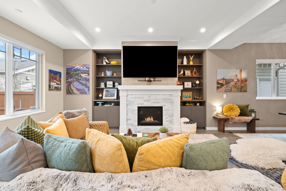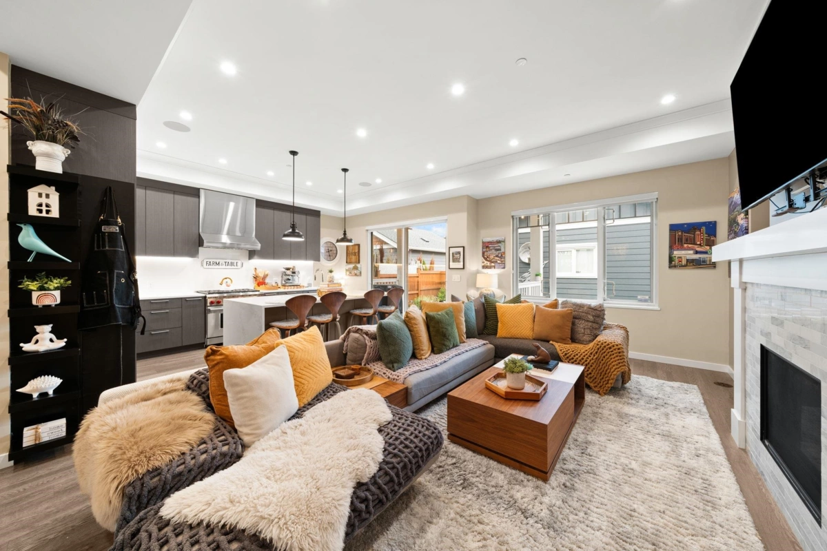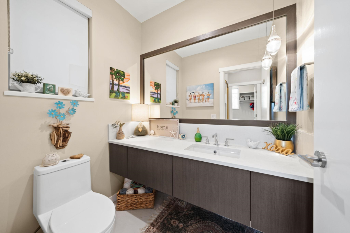 Styled & presented to perfection,this impeccably maintained 4 bed/3 bath residence shows like a designer show suite.Offering 2183 sq.ft of elevated living in an exceptional location,10ft ceilings & expansive windows flood the main lvl w/ natural light. Chef’s kitchen fts. integrated fridge,freezer,dw,6-burner Wolf range, bar fridge & an oversized island designed for entertaining.Custom built-ins & a sleek gas fireplace anchor the space,while a thoughtfully designed desk nook adds function w/ style.Upstairs,the primary impresses w/ a deep soaker tub,shower,dbl vanity,water closet & WIC. Lrg upper laundry rm w/sink. Artificial turf yard, covered porches front & back, pristine 2 car garage with custom cabinetry + 1 extra parking.Optional clubhouse access w/pool,sauna,steam,gym&more for a fee.