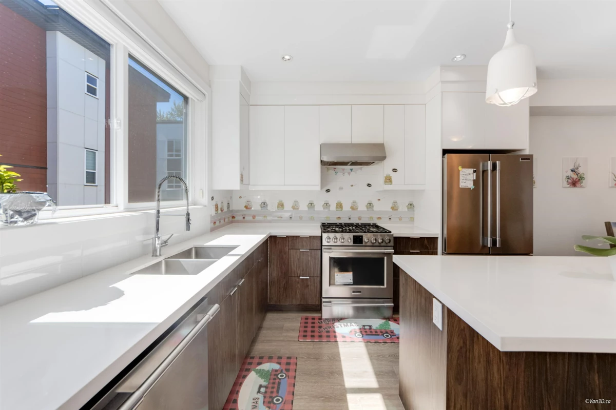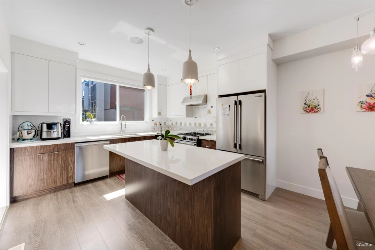 Welcome to ISOLA, a centrally located community in the heart of South Surrey! This beautifully maintained 3-level home offers 3 bedrooms, a flex space, and 4 bathrooms with timeless design and a bright, open layout. Enjoy 9-foot ceilings, a contemporary kitchen, and premium upgrades including built-in speakers, central vacuum, custom shelving and cabinetry, security cameras, fireplace paneling, and epoxy-coated garage floors. Stay comfortable year-round with central A/C. The double side-by-side garage and ample visitor parking add to the convenience. Walk to shopping, parks, schools, and dining. Close to South Meridian Elementary and Earl Marriott Secondary. Super clean and like-new!
