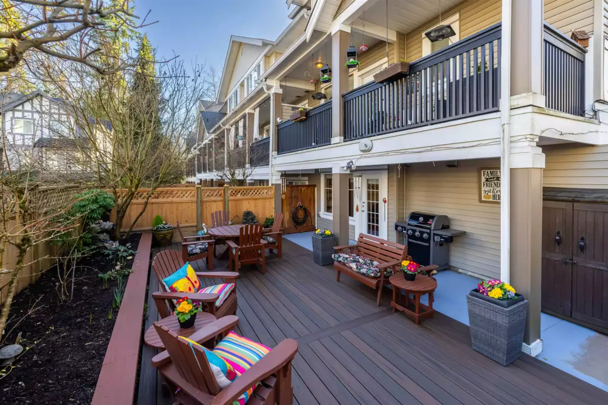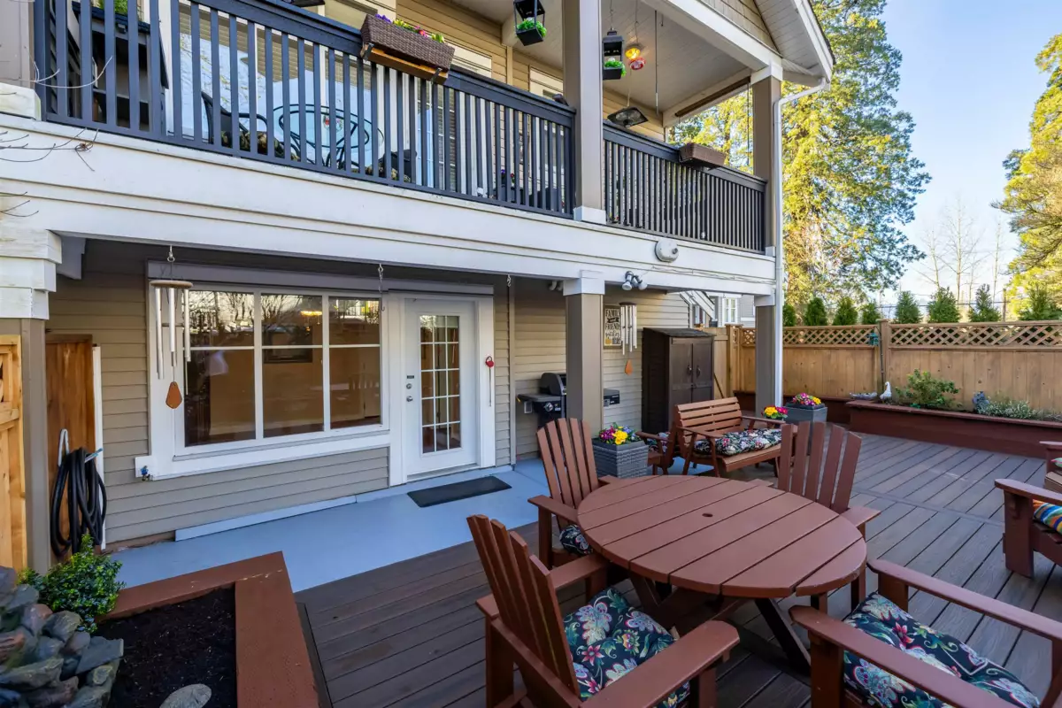 Welcome to Redwood Bridge Estates – a rare opportunity in this sought-after complex! This charming 3-bedroom, 3-bathroom family-style corner townhouse offers the perfect blend of comfort and convenience. Enjoy multiple outdoor spaces facing east and west, including a private fenced backyard with an updated composite deck—perfect for morning coffee. The garden area invites your green thumb, while the double-car garage adds everyday ease. Inside, high ceilings and a gas fireplace create a warm ambiance in the living room. Steps from trails, play areas, and just minutes to recreation, schools, transit, and shopping with easy access to Highway 1, and Golden Ears Bridge. Catchments include Topham and Walnut Grove Secondary. You don't want to miss out on this on