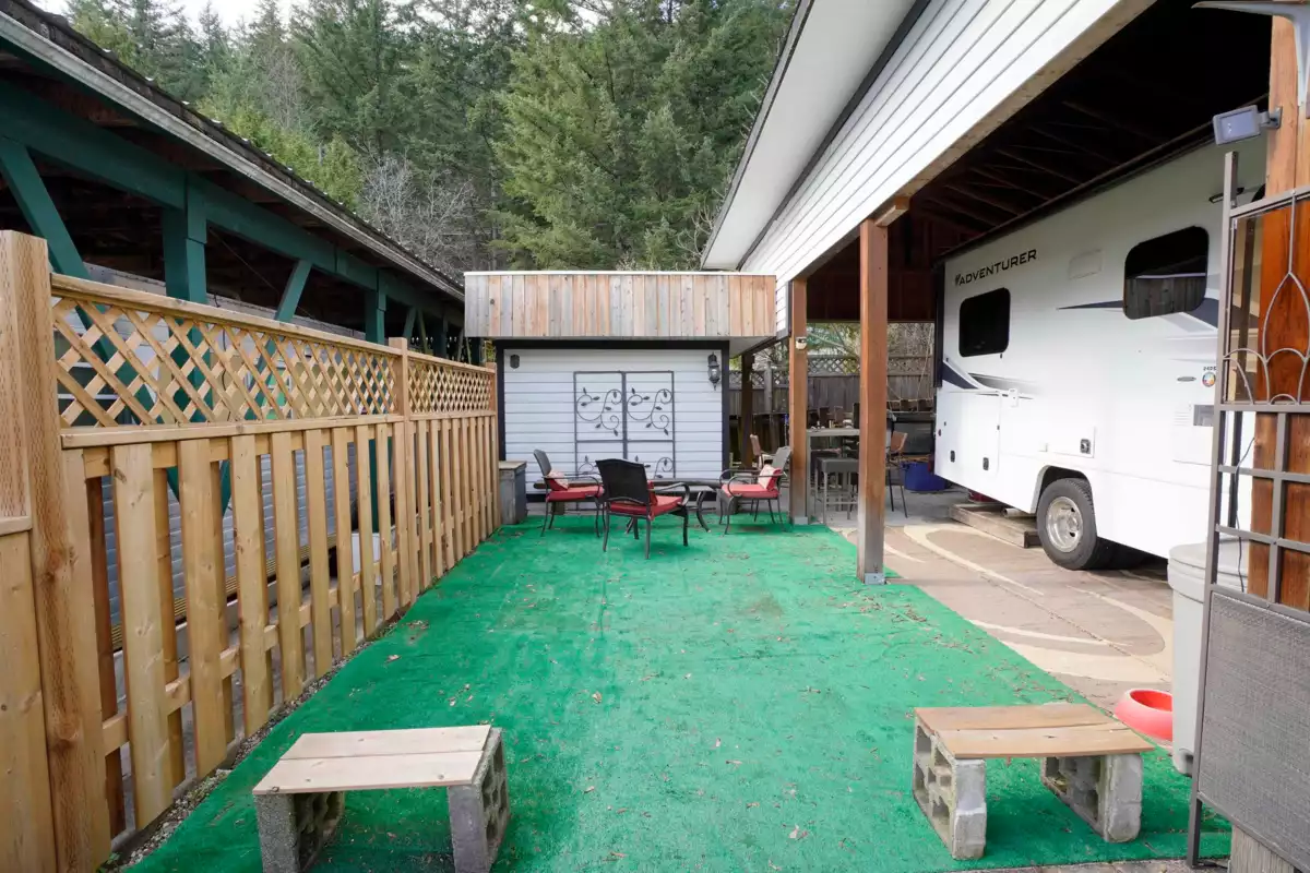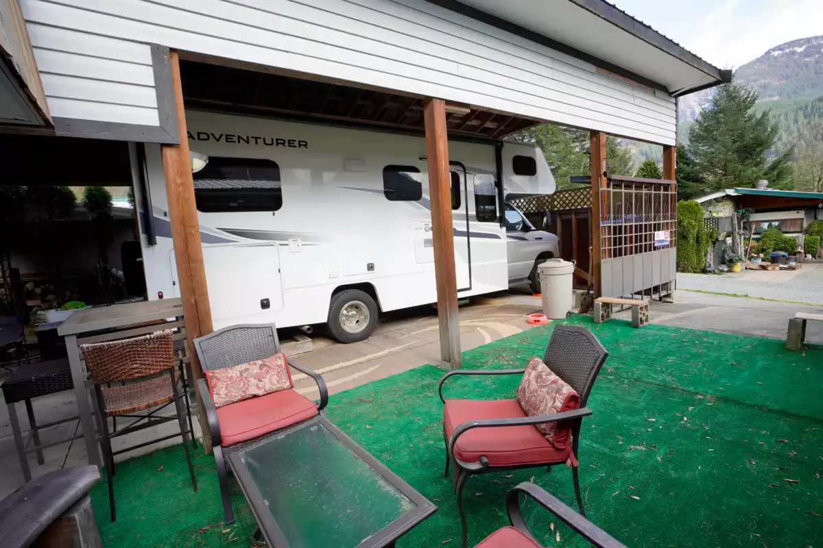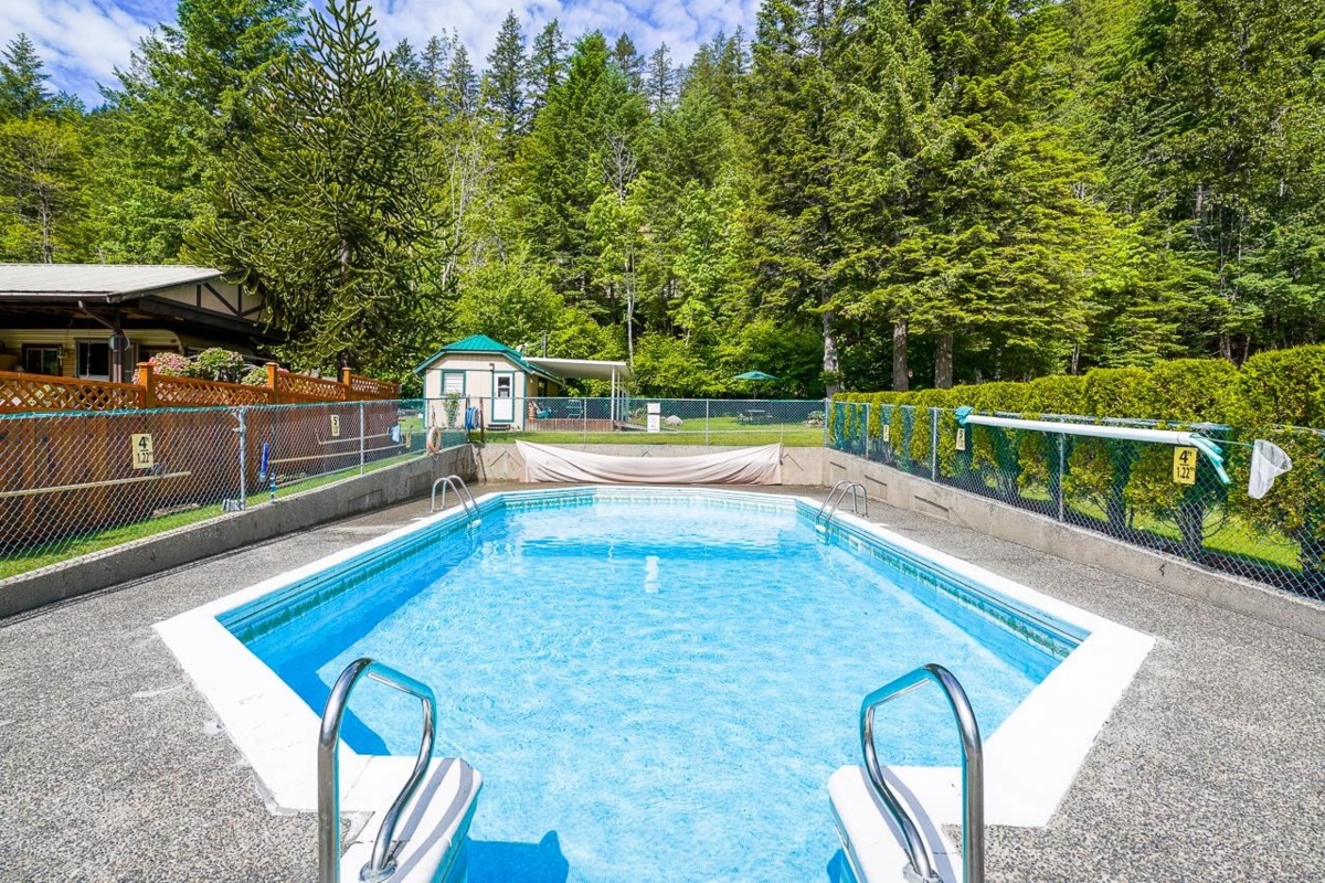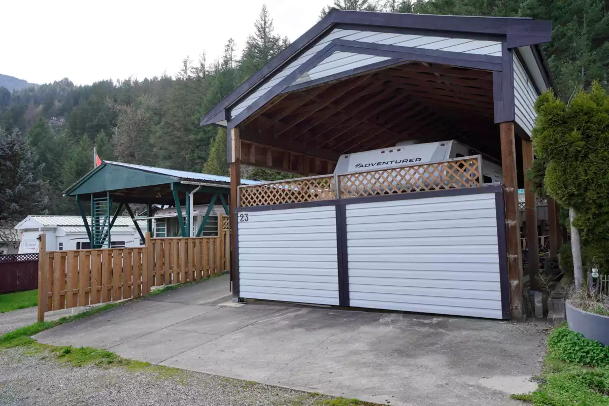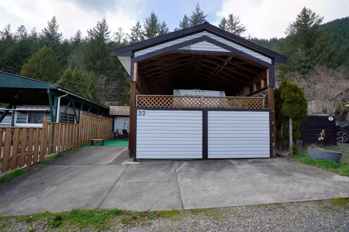 Just in time for summer joy! This lot is situated in the All Hallowes Recreational Park within the renowned Fraser Canyon. There is a professionally installed structure designed to shelter your recreational vehicle on the lot. The front section swings open, allowing free access for your RV or motorhome while keeping it from the elements. A pretty patio space and a spacious storage shed with a new roof and soffits provide ample area for all your outdoor essentials. The park offers full-time caretakers, a heated inground pool, laundry facilities, showers, fully serviced visitor parking, and a clubhouse for community gatherings. The yearly membership fee is $1,300.00, covering taxes, water, garbage, sewer, common property maintenance, and snow removal. Summer fun awaits!