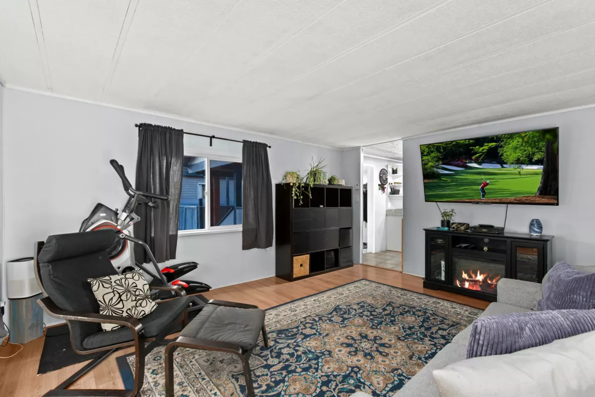 Welcome home to this 3 bed 2 bath mobile home at Spiral MHP! A spacious 1500+ sq ft layout inside opens up to a large, private outdoor space that sits on a greenbelt. The property includes a work shop/shed with power outlets/lighting, as well as an in-ground fire pit, and a fully serviced hot tub. Many updates including; recently installed metal roof, new siding on house, upgraded plumbing and electrical, new flooring and a large jetted tub in the primary ensuite. The home has a wood burning fire place inside to keep things cozy! Unique to this lot are 3 Parking spots which can accommodate a 21' camping trailer as well as being the only mobile home park to allow dogs. Walking distance to shopping, parks, hiking trails and steps to the Elementary School. Come and have it all here!