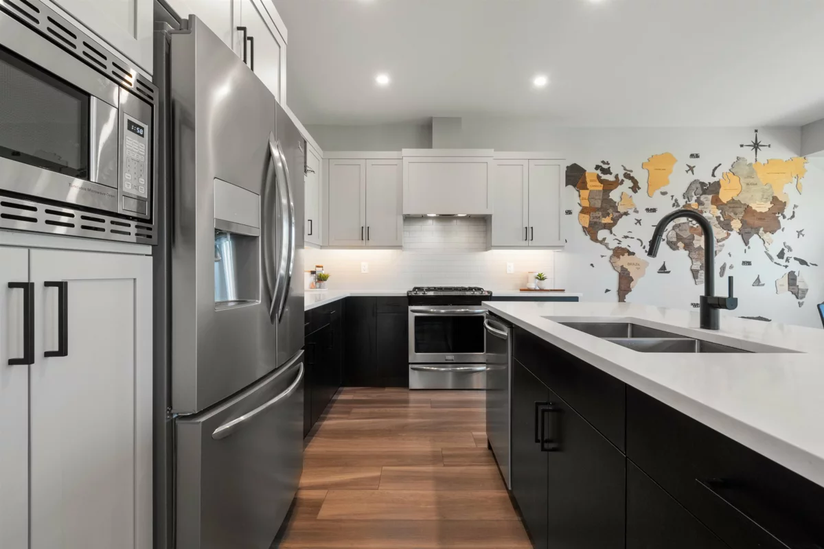 Welcome to Water's Edge at Cedar Sky, where you'll enjoy breathtaking views of the Fraser River from each level. As an end unit, this home is flooded with natural light and offers three balconies, one on each floor, allowing you to immerse yourself in the serene surroundings. The main floor boasts a beautiful open concept kitchen with quartz counter tops, SS appliances and gas range stove. Upstairs you'll find three bedrooms including an expansive primary suite w/ private balcony, w/i closet and spa-like ensuite featuring a stand alone tub, duel sinks and separate shower. The lower level offers a separate bedroom, bathroom and spacious rec room, providing the perfect retreat for guests. Enjoy upgrades including: epoxy garage floor, AC & an EV charger plug! Don't miss out, call today!