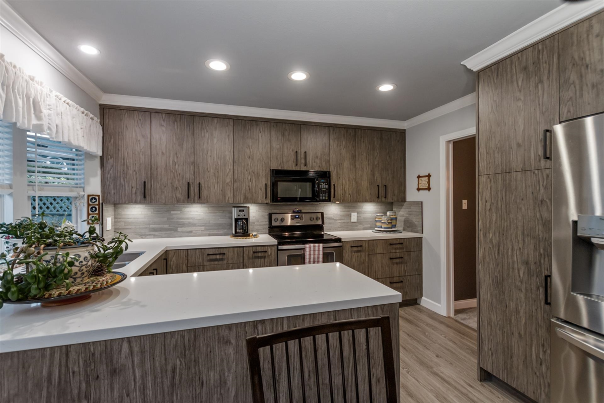 Pride of ownership shines in this Lakewood Place townhome. Lots of updates and very clean! Kitchen updated and appliances.New beautiful stone fireplace in family room off kitchen.Large rooms with loads of storage. The kitchen, eating area and family room all face onto a very private backyard. Auto. awning provides more shade on the sunny days. Luxury vinyl plank flooring, quartz countertops, new stainless steel appliances in kitchen. Combined living and dining area allows for big family gatherings.Three bedrooms up.Primary boasts double sinks, soaker tub, shower PLUS separate dressing table off walk in closet. Double size garage with coated floor. Heat on demand hot water. Full crawl space. Across from Boundary Park lake and close to shopping, restaurants. OPEN Jan 18 2-4pm