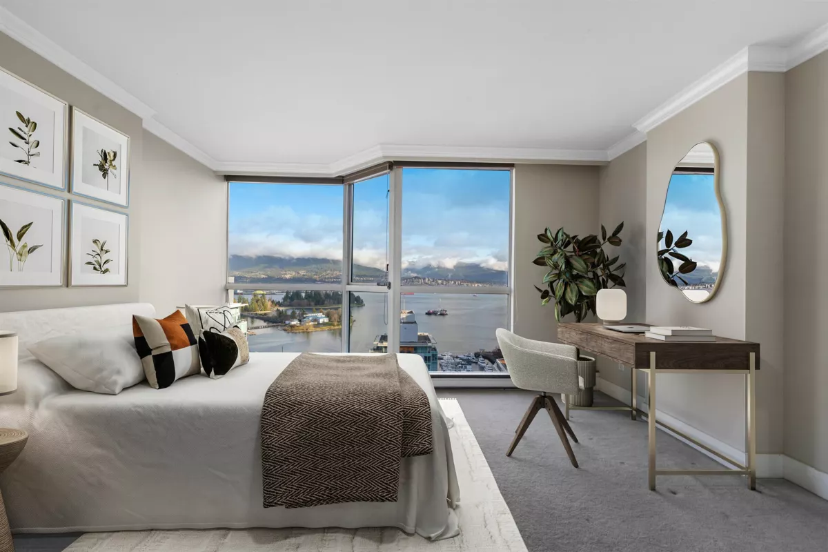 This is Palais Georgia - a rare opportunity to secure over 2000SF with protected water, city, and mountain views in Coal Harbour under $1000/SF!! This 2 bedroom, 2 bathroom + flex residence welcomes a renovation but its fully liveable as is and offers the detached home like space buyers are searching for. Floor to ceiling windows capture sweeping views in nearly every direction, including Canada Place fireworks and English Bay. Thoughtful separation between living and sleeping areas, A/C, and large updated kitchen and two private balconies enhance livability. Amenities include an indoor pool, hot tub, fitness centre, concierge and TWO Parking stalls. Steps to the seawall, Stanley Park, shops, dining, transit, and the Coal Harbour Community Centre.