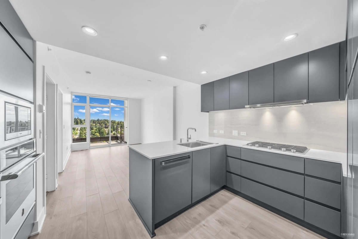 Beautiful 1 Bedroom home with A/C on high floor at reowned Hensley by Cressey. East facing with view of Fraser River, city & Mt. Baker. Bright & spacious layout with large living/dining area. Dream kitchen with built-in high-end appliances like 5 burners cooktop, double fridges, wall-mount oven/microwave. Large balcony extends your living space to outdoor. Large bedroom with full size closet. Amazing over-height club house situated on top floor with indoor Zen garden, fireplace lounge, game salon, social/reading cove & luxurious dining hall with full kitchen for your gathering. High-end building with concierge service, outdoor pool/hot tub/cabanas, BBQ & well equipped gym. One Parking stall & locker. Conveniently located close to sky train station, shopping & recreation.