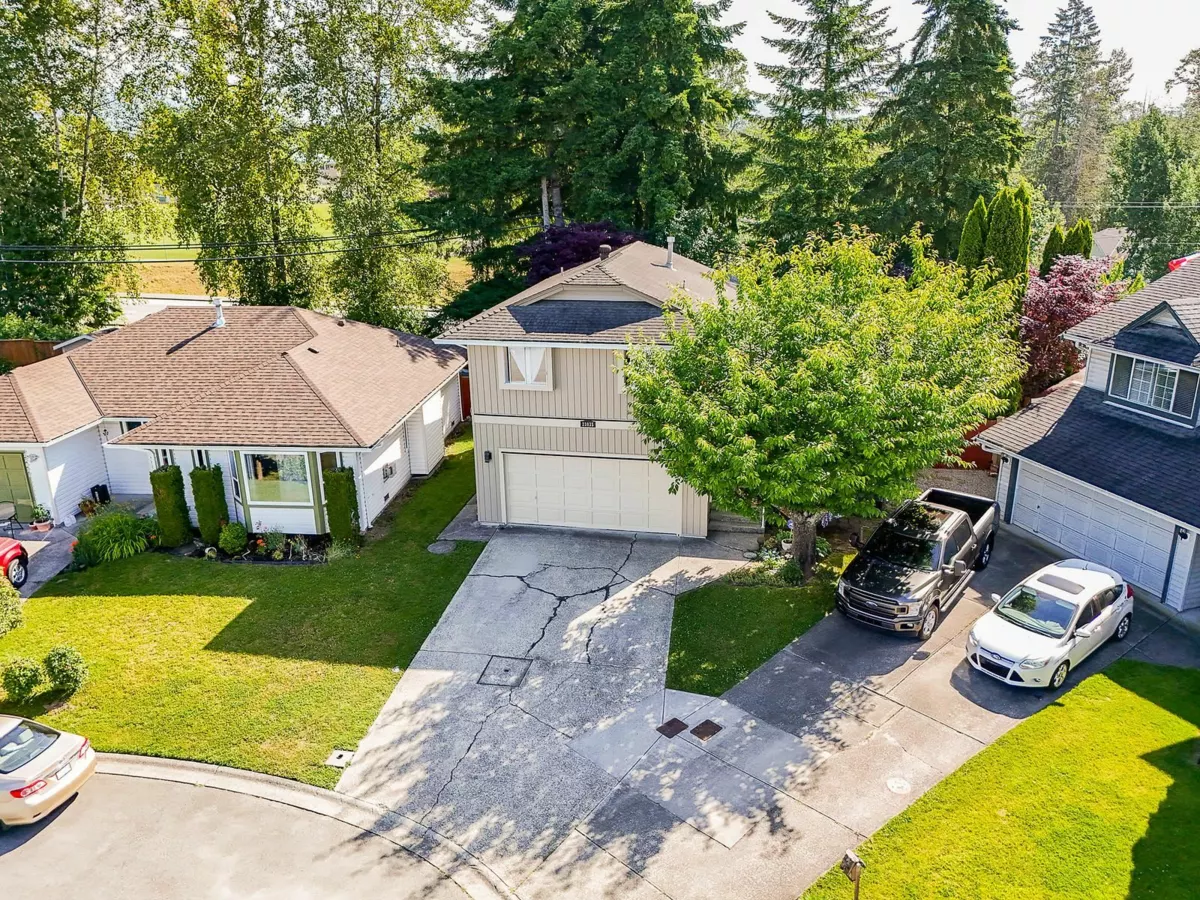 Come See the Prettiest & Most Affordable 3 bedroom, 2.5 bath home in Maple Ridge situated in cozy cul-de-sac at the top of the hill for added privacy. Polished pine floors in the bright & spacious living and dining area with W/B fireplace & sliding patio door to your fully fenced back yard. Lower level has the bright kitchen with access to the back yard and patio for family gatherings, laundry and 2 piece bath. You also have a double garage which has been converted to playroom/media room/home office (extra 427 sq ft). Top floor has 3 spacious and bright bedrooms with ceiling fans and views from each room, polished hardwood floors & 2 updated bathrooms also. Beautiful back yard with separate shed/workshop for the handyman. NICE HOME or Investment Property..