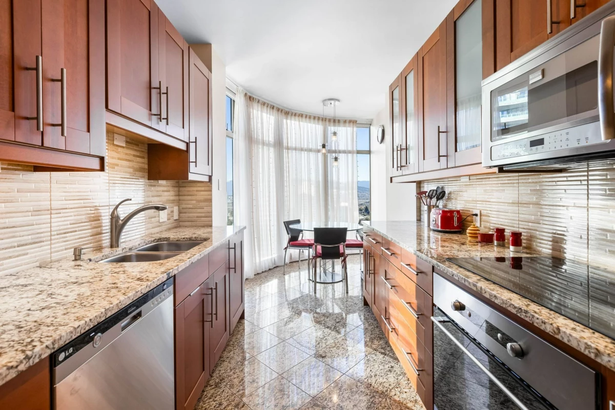 Welcome to "The Nines Sky Residence" because this stunning residence has been completely reimagined to the nines in every single aspect with mesmerizing city/mountain views. Years of planning, meticulous implementation and refinement have ultimately led to the creation of this most sophisticated home. RECENTLY UPGRADED 2024 our expansive 1,140 SF is enhanced by tall ceilings, & ultra functional layout, creating a bright & sprawling atmosphere. Kitchen, bathrooms, have all been remodeled Enjoy outrageous views of city, park, & mountain ranges from all principal rooms. Built by award winning BOSA DEVELOPMENTS the COVETED WIMBLEDON CLUB complex stands as lone of the best built & maintained buildings in Burnaby. Comprehensive amenities Club House, 2 Guest Suites, Indoor Pool, & Tennis courts.