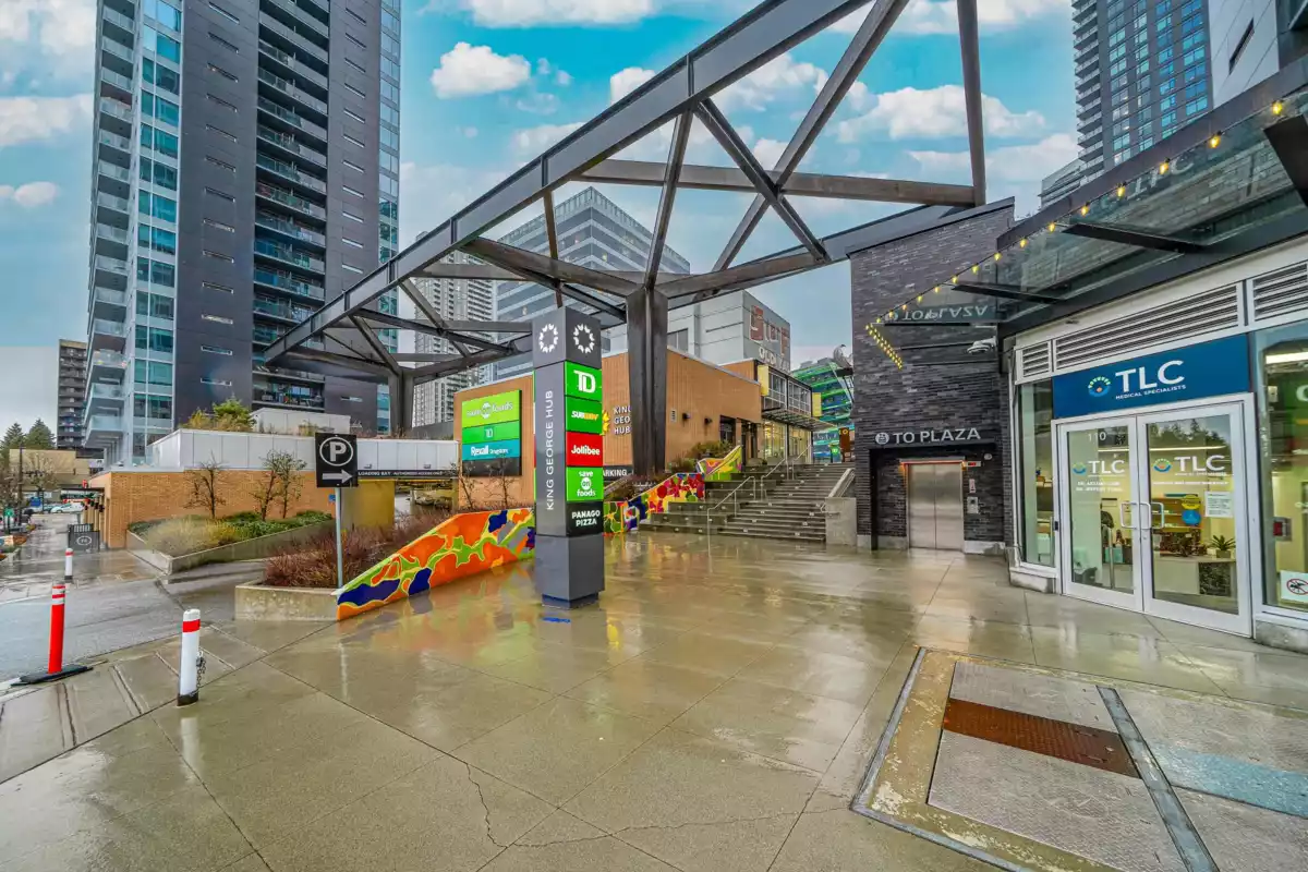 Welcome to King George Hub 2 by PCI Developments — Best floorplan in the building! This bright home offers floor-to-ceiling windows, expansive city views, and a generous balcony. The sleek open kitchen features Blomberg appliances, quartz countertops, and modern cabinetry. Enjoy resort-style amenities including a rooftop lounge, fitness centre, yoga studio, theatre, and BBQ areas. This unit includes 1 parking & 1 bike locker. Steps to SkyTrain, Central City Mall, SFU, shopping, and dining. Perfect for living or investing. Move-in ready. open house Jan 24 & 25 2-4 PM