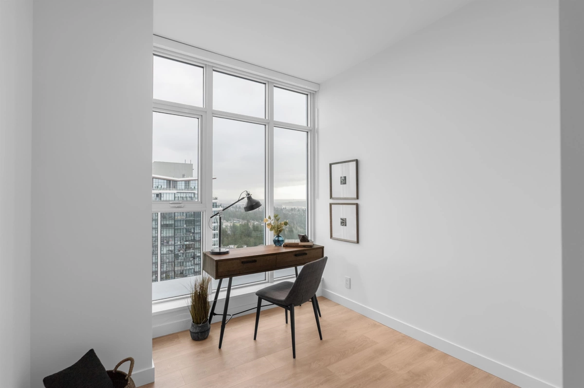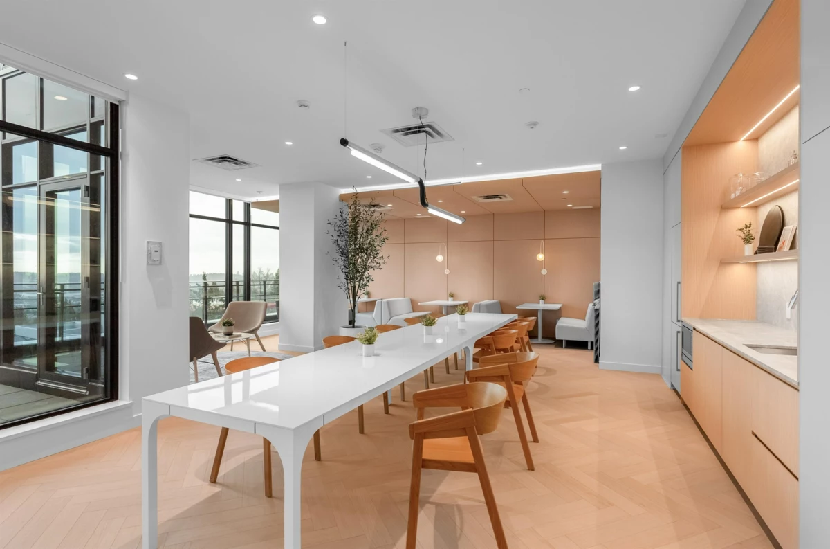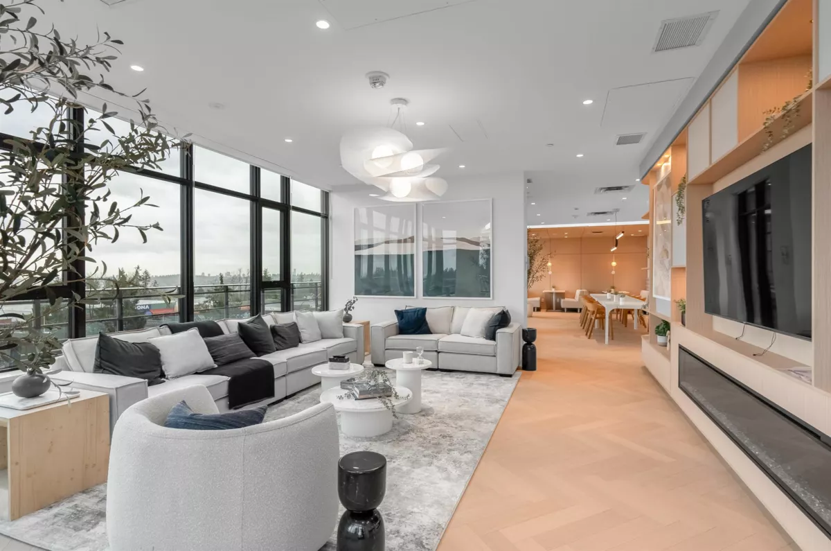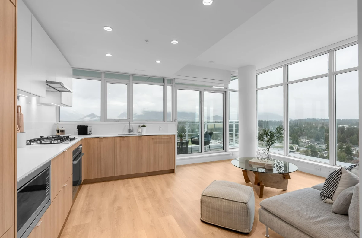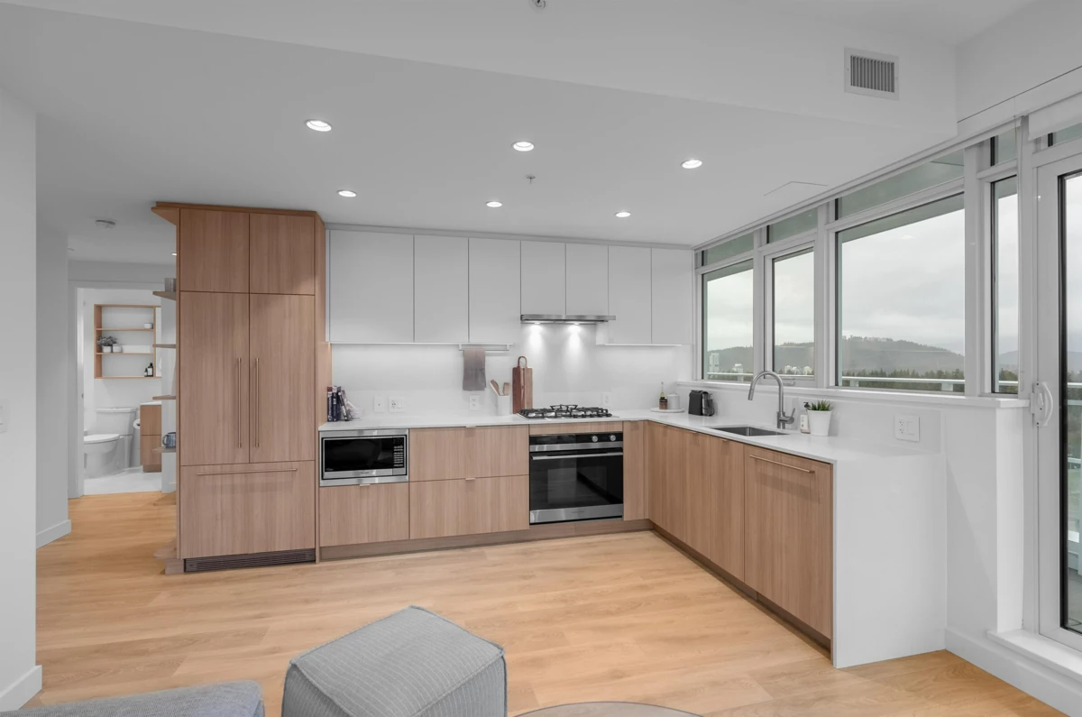 Welcome to this newly completed 2-bed, 1-bath sub-penthouse on the 23rd floor—747 sq. ft. of smart, stylish living with spectacular NE mountain and city views. A rare 140 sq. ft. balcony with natural gas and power extends your lifestyle outdoors. Inside, enjoy a premium kitchen with quartz countertops and Fisher & Paykel integrated appliances, plus sleek laminate flooring throughout. West by Beedie puts you in the heart of Burquitlam, steps to shops, parks, The Vancouver Golf Club, and minutes to SFU. Resort-style amenities include a designer party room, state-of-the-art fitness centre, co-working lounge, luxury guest suite, outdoor BBQ area, and a one-of-a-kind indoor sports court you won’t find anywhere else!