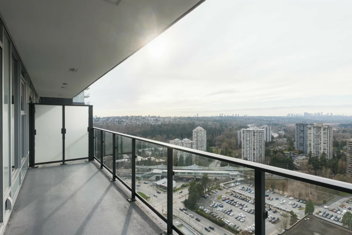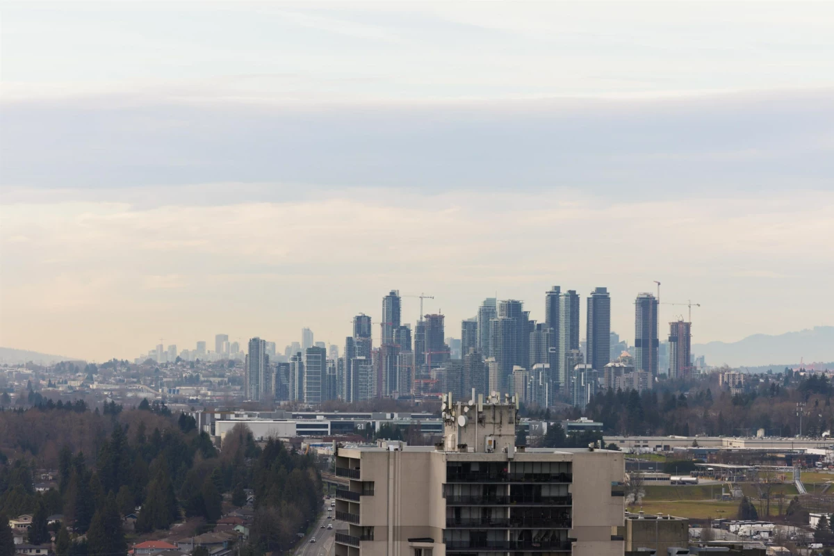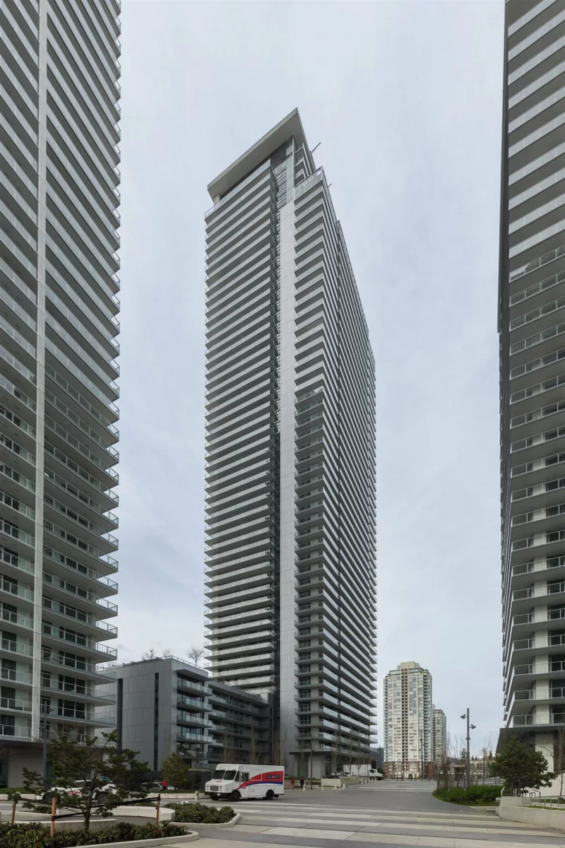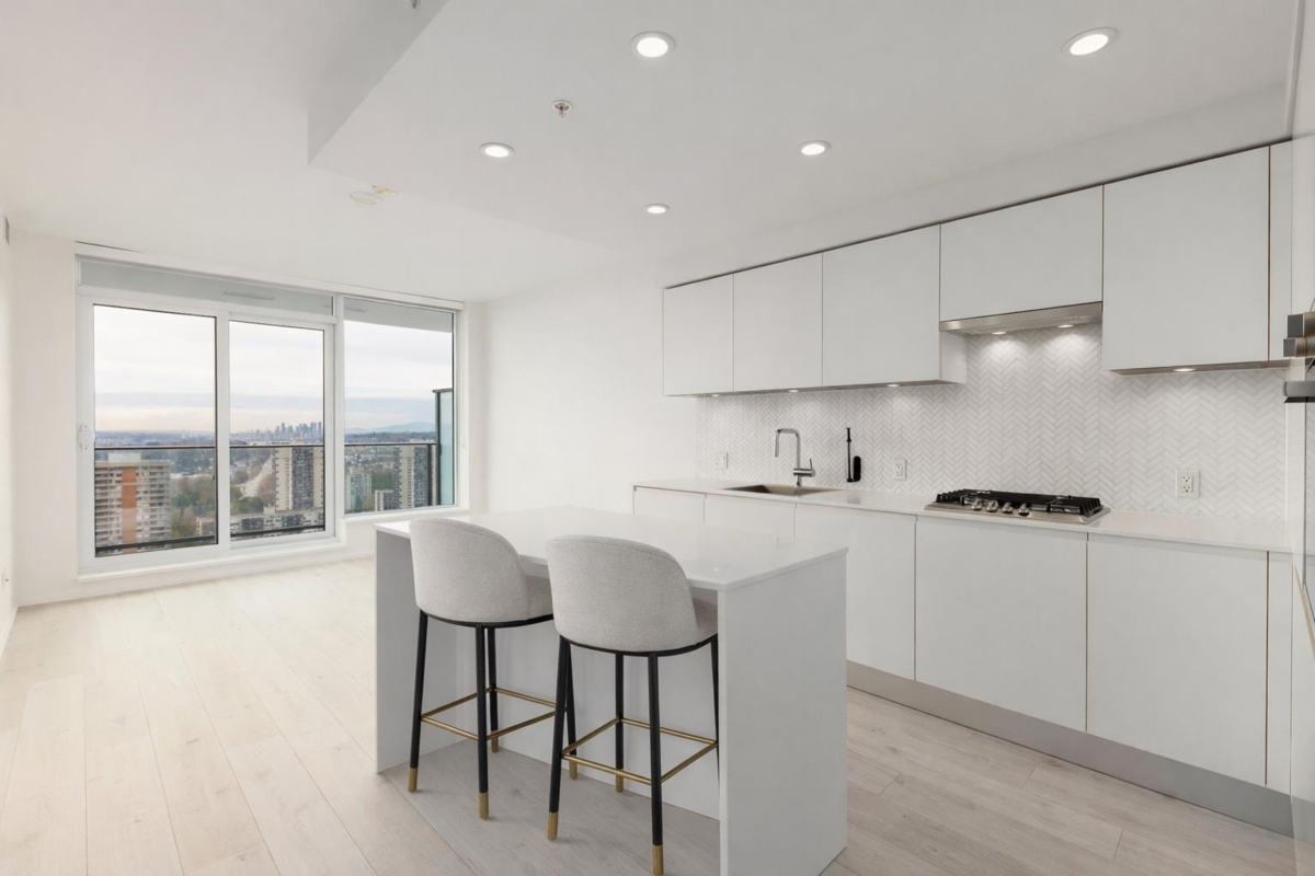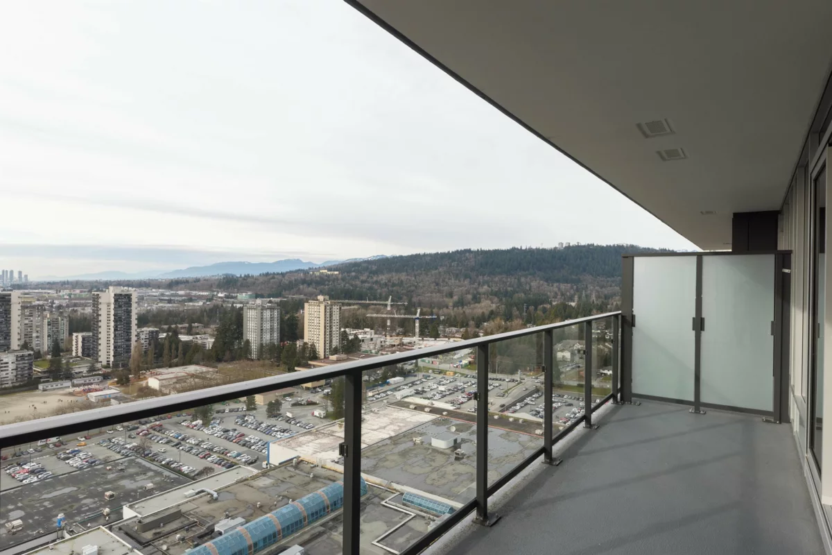 Welcome to this bright west-facing home, offering unobstructed mountain & city views through expansive floor-to-ceiling windows. The efficient rectangular layout maximizes every square foot with no wasted space. A modern kitchen anchors the home with Bosch appliances, a large island, & seamless flow into the living area, ideal for daily living & entertaining. Enjoy year-round comfort with air conditioning & extend your living space outdoors on the large patio. This master-planned community features a full-service clubhouse with gym, yoga studio, games room, study rooms, kids’ play area, and rooftop patio with BBQs. Includes 24-hour concierge, shared EV charging, 1 parking stall, and storage locker. Steps to shops, restaurants, Lougheed Mall, and just a 3-minute walk to Lougheed Skytrain.