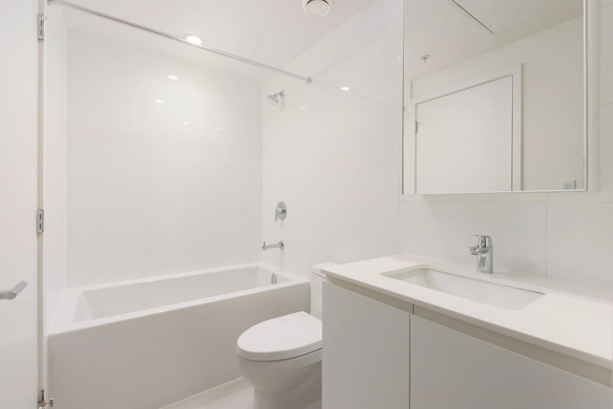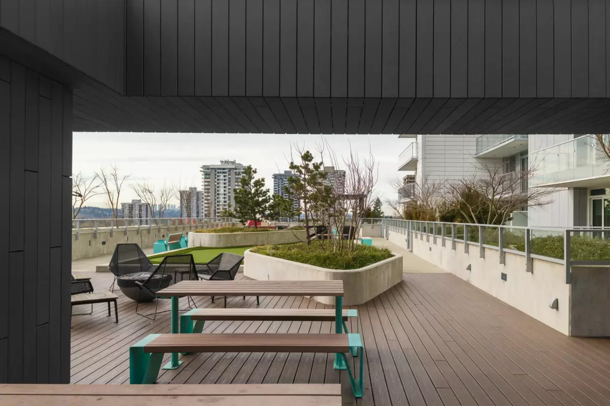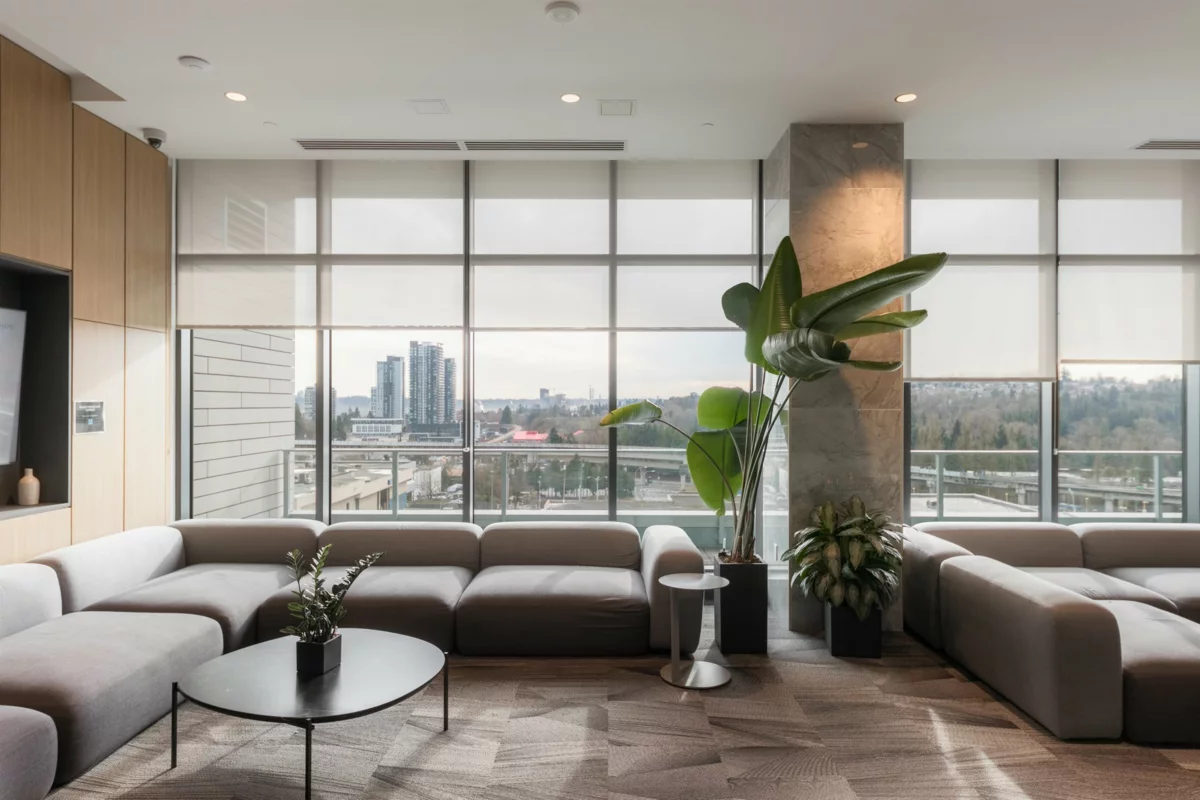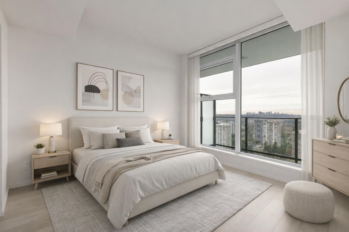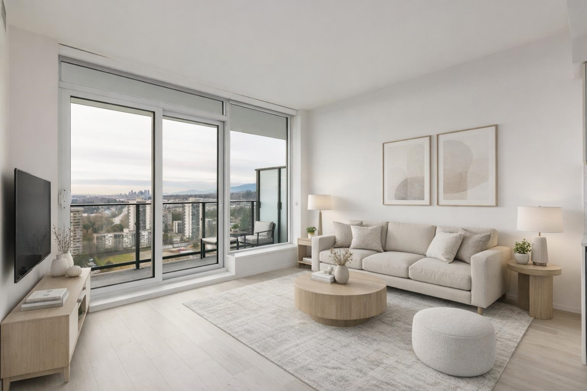 Welcome to this bright west-facing home, offering unobstructed mountain & city views through expansive floor-to-ceiling windows. The efficient rectangular layout maximizes every square foot with no wasted space. A modern kitchen anchors the home with Bosch appliances, a large island, & seamless flow into the living area, ideal for daily living & entertaining. Enjoy year-round comfort with air conditioning & extend your living space outdoors on the large patio. This master-planned community features a full-service clubhouse with gym, yoga studio, games room, study rooms, kids’ play area, and rooftop patio with BBQs. Includes 24-hour concierge, shared EV charging, 1 parking stall, and storage locker. Steps to shops, restaurants, Lougheed Mall, and just a 3-minute walk to Lougheed Skytrain.