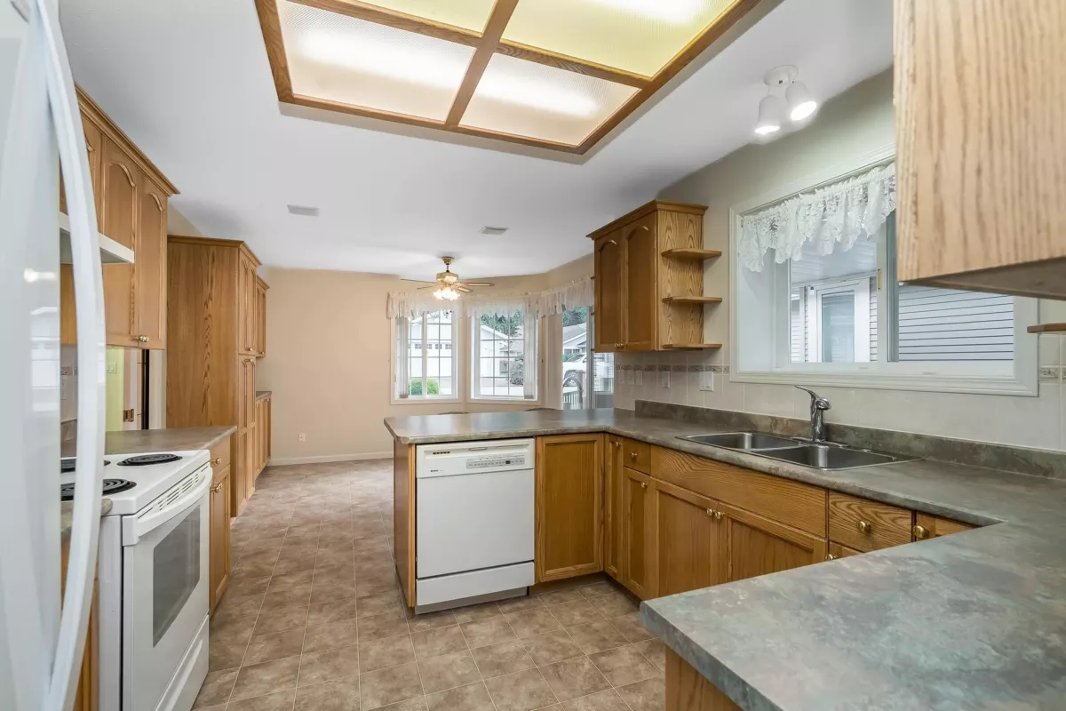 Desirable Promontory Lake Estates, 1600 sqft 2 bedroom + DEN Rancher! The Popular "Devonshire" Floorplan - enter from the dble garage, side kitchen or main door! This Bright kitchen boasts plenty of cabinet space, an island & sunny eating nook, next to sliding glass doors w/easy access to the covered patio complete w/ gas bbq hookup for outdoor relaxing. Glass pocket doors throughout for comfort & privacy. The spacious primary bedroom has walk in shower & walk in closet. Second bedroom, full bath & Den for guests or hobbies. Enjoy A/C, built in Vacuum, gas Fire Place, Double Garage, Built in speakers, crawl space storage. This Secure 45+ gated complex allows 2 pets, no rentals, has RV Lot. Super social Clubhouse for events. Lease fee $197/mo. Maint fee $190/mo. *OPEN HOUSE SUN 18th 1-4!*