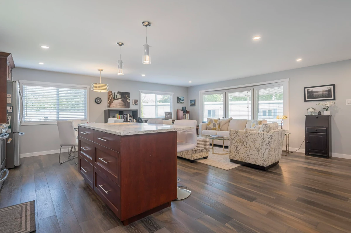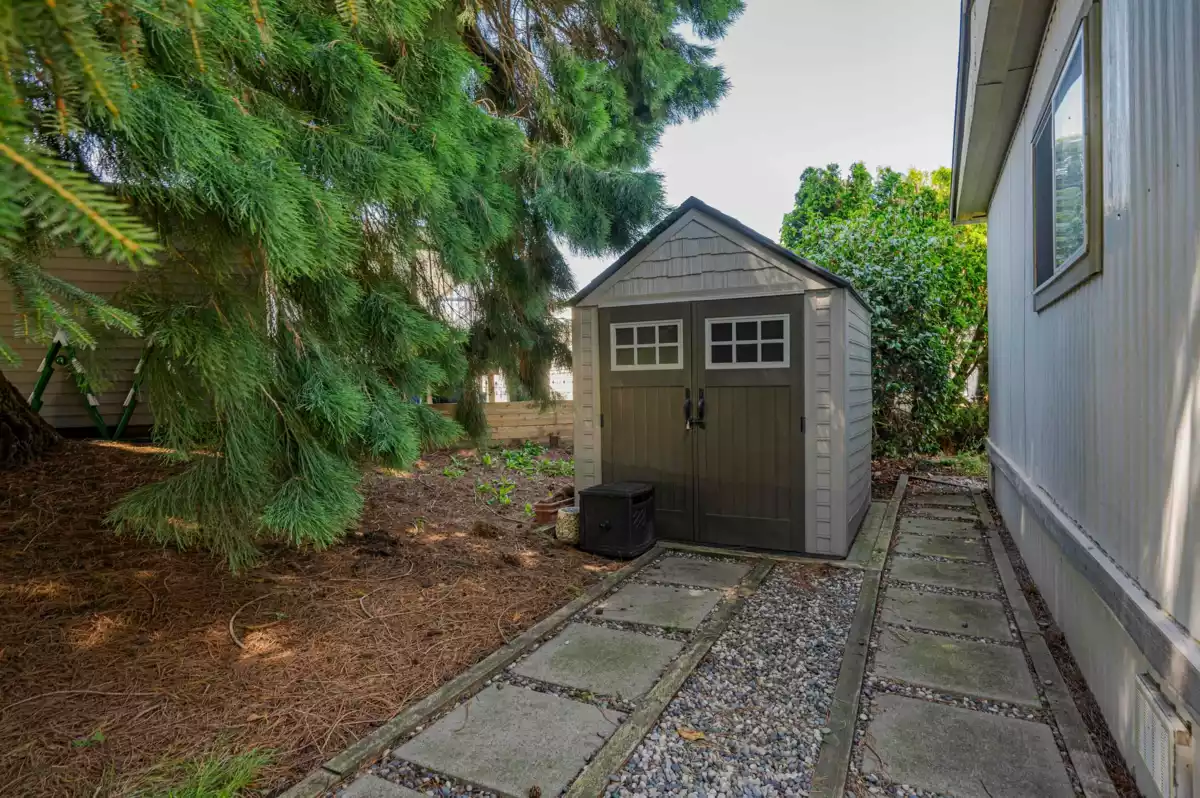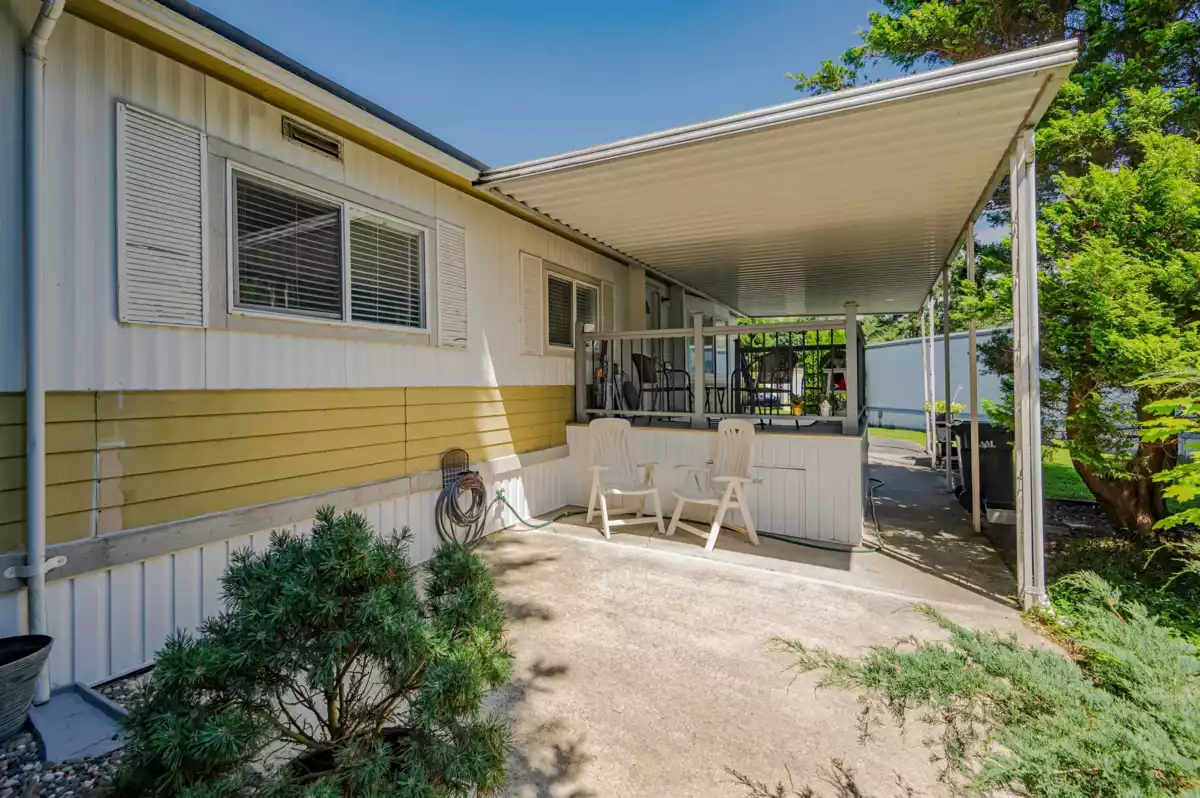 Breakaway Bays, a great community for retirees and families. This renovated home is nestled in a peaceful cul-de-sac steps to the Clubhouse and outdoor heated pool. 2 bdrms, 2bths, spacious open concept living area with large island! Great space to entertain! Large covered sundeck, 7' X 7' new shed, fantastic amenities, including an outdoor heated pool, activity hall for socials, green spaces for relaxation and recreation. With no age restrictions and a welcoming 2 pet policy (Max height 17” at withers) everyone can feel at home here. just a short 5-minute drive to the beach, major shopping centers, and the U.S. border. Recent updates in the last 6 years: furnace/fridge/gas stove/dishwasher. 2025 Updates - New Hot Water tank & Silver Label, Electricity is included in the pad rent!