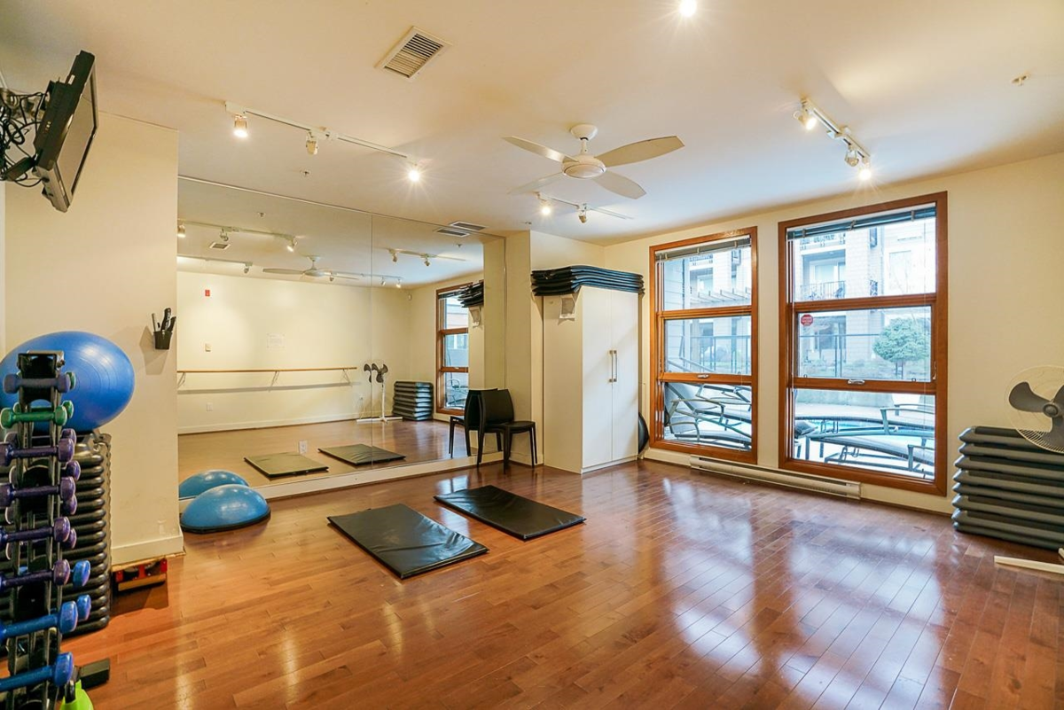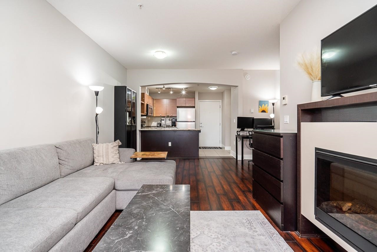 SALUS BY ADERA: 1-bedroom + den, 1-bath home with 9ft ceilings, an open layout, and large windows that fill the space with natural light. The thoughtful den includes built-in closets, creating a flexible work-from-home nook with valuable extra storage. The kitchen features granite countertops and stainless steel appliances, and the private balcony is surrounded by mature trees—perfect for quiet mornings or evening unwinding. Includes 1 parking stall and 1 storage locker. Enjoy exclusive access to the Salus Aqua Club with a heated saltwater pool, hot tub, sauna, steam room, yoga studio, fitness centre, spa, party room, playground, and rooftop patio. Rentals and 1 pet allowed. Close to transit, schools, shopping, and Hwy 91 & 99—ideal fit for first-time buyers, downsizers, or investors.