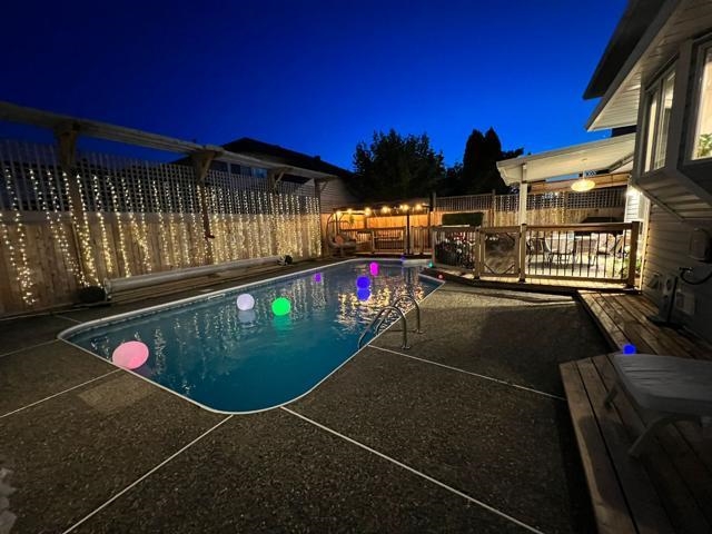 Discover this fantastic family home featuring a beautiful inground pool with a brand-new liner—perfect for summer fun! This custom-built 4 bed, 3 bath air-conditioned home offers RV parking and a warm, inviting layout with a bright kitchen, family room, formal dining area, and a spacious second living/entertainment room with a WETT-certified wood stove. Recent updates include appliances, bathrooms, hot water tank, exterior fencing, and landscaping. A convenient 5 ft crawlspace provides valuable extra storage. Located in a friendly neighbourhood close to schools, shopping, West Coast Express, and Maple Ridge Water Park—this is an incredible opportunity you don’t want to miss!