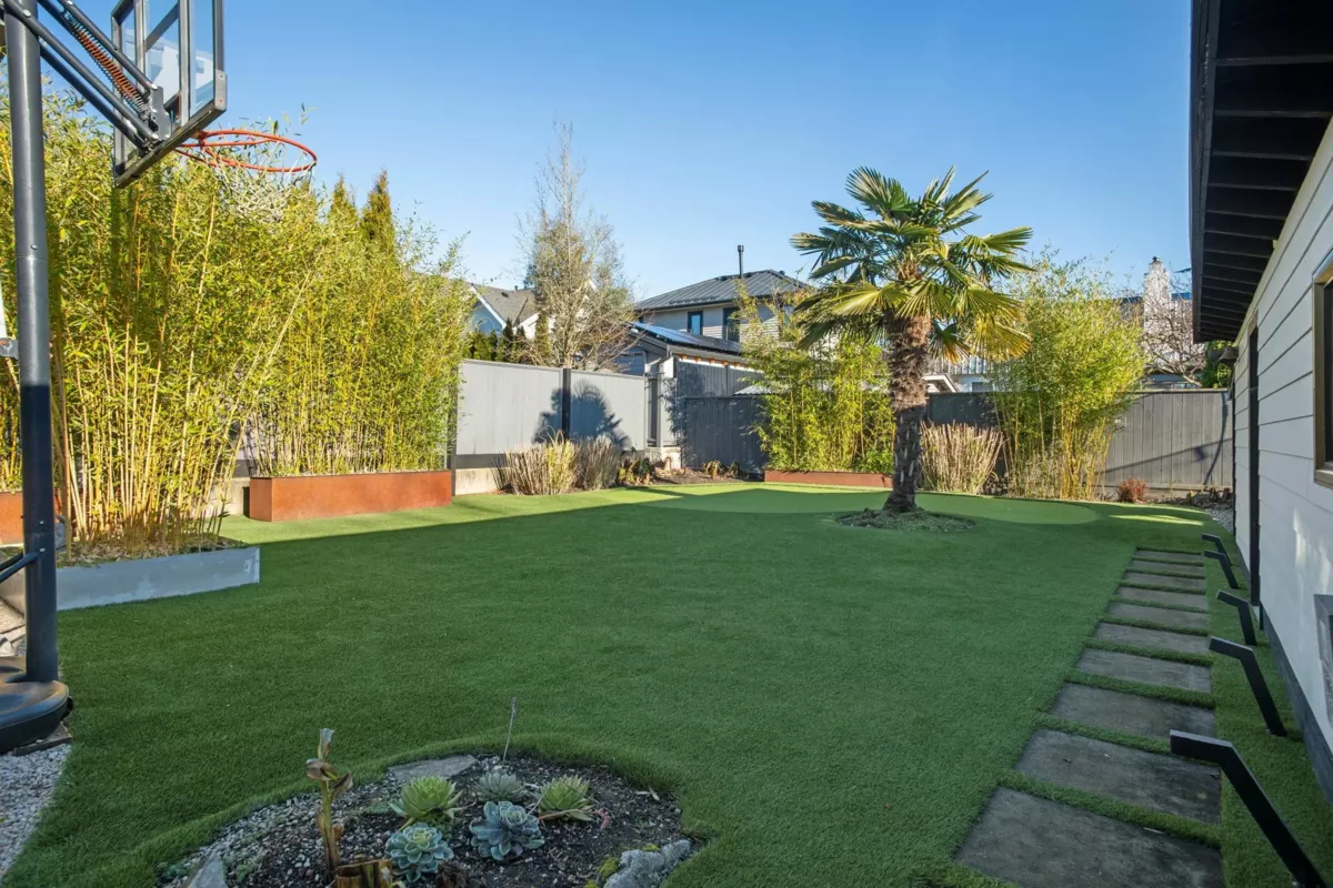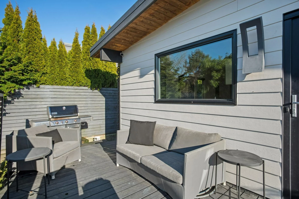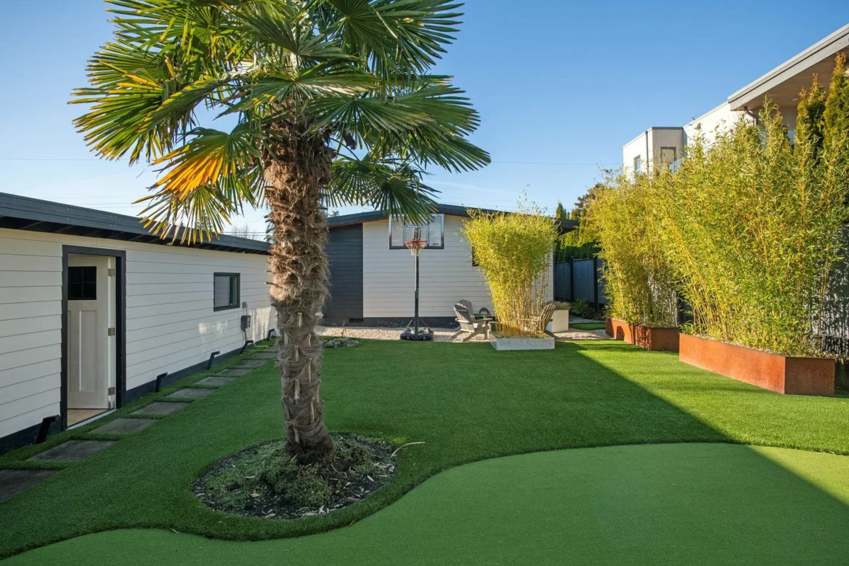 This distinctive mid-century residence in Boundary Bay blends timeless character with modern upgrades, just steps from the beach. Vaulted ceilings create an airy, open atmosphere that enhances the home’s sense of space, while thoughtful renovations inside and out preserve its original charm. Updates include a new furnace, on-demand hot water, Bertazzoni gas range, Miele fridge, and an updated wrap around deck. Garage has been converted into a self-contained one-bedroom, one-bath, featuring a skylight and in-floor heating—ideal for guests or extended family. Situated on a 60 x 120 lot, the private backyard oasis takes full advantage of Tsawwassen’s famously low rainfall and includes a palm tree and personal putting green. Southlands, markets, cafes and the beach just around the corner.