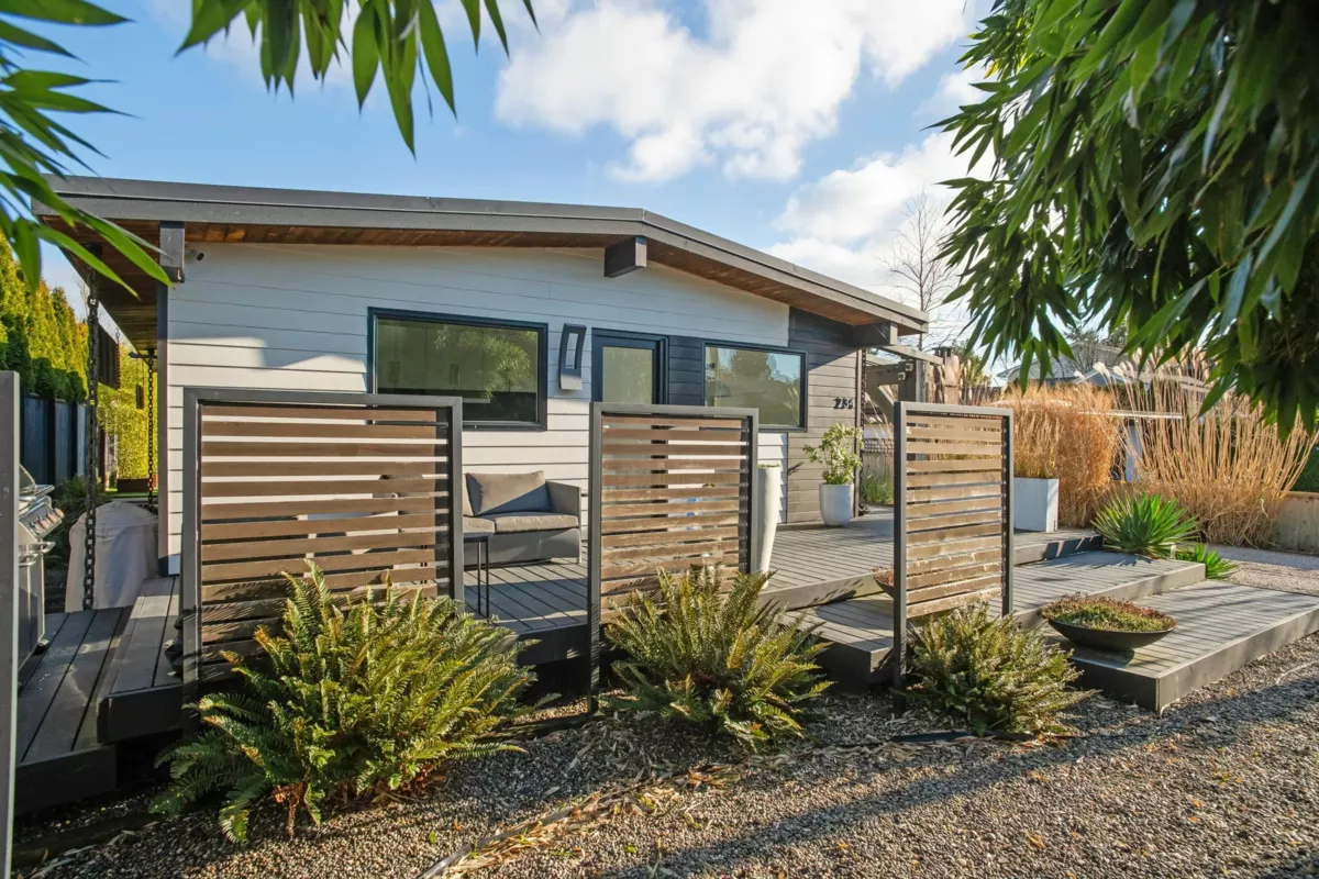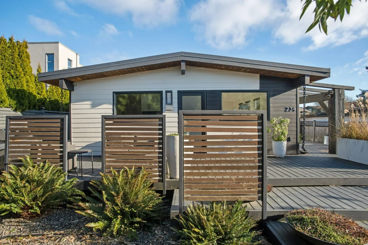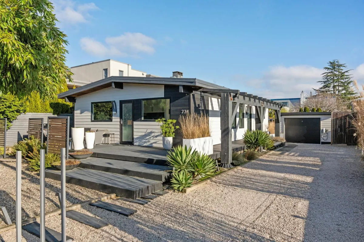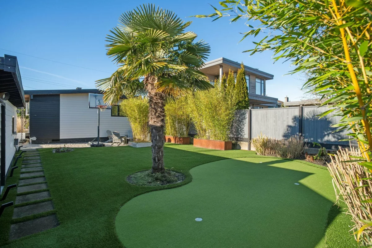 This distinctive mid-century residence in Boundary Bay blends timeless character with modern upgrades, just steps from the beach. Vaulted ceilings create an airy, open atmosphere that enhances the home’s sense of space, while thoughtful renovations inside and out preserve its original charm. Updates include a new furnace, on-demand hot water, Bertazzoni gas range, Miele fridge, and an updated wrap around deck. Garage has been converted into a self-contained one-bedroom, one-bath, featuring a skylight and in-floor heating—ideal for guests or extended family. Situated on a 60 x 120 lot, the private backyard oasis takes full advantage of Tsawwassen’s famously low rainfall and includes a palm tree and personal putting green. Southlands, markets, cafes and the beach just around the corner.