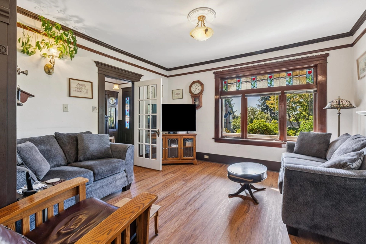 The Historic “Burgess House” - Offered for the first time in 30 years, this cherished 1912 Craftsman home blends timeless character with thoughtful updates. Recognized with a 2017 heritage preservation award, it features 9’ ceilings, stained-glass windows, and intricate millwork. The south-facing living room with gas fireplace connects to a formal dining area, while the spacious kitchen opens to a deck and level backyard. Upstairs offers four bedrooms with mountain and partial city views, and the lower level includes a near-new one-bedroom guest suite. Set on a 50’ x 132’ lot with lane access for future garage or coach house potential (confirm with DNV), and steps to École André-Piolat and Braemar Elementary—this is a rare chance to own a piece of North Vancouver’s history.