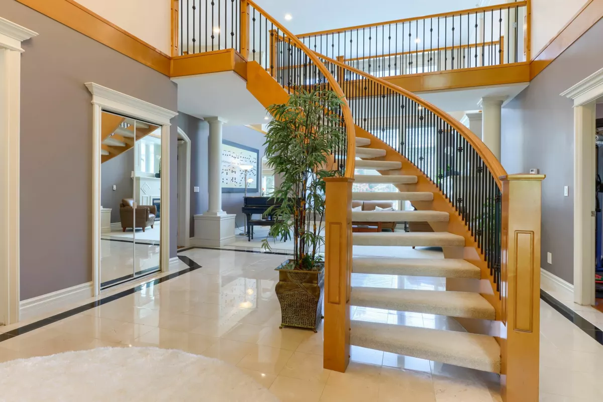 Radiant heated home is located in exclusive Chantrell Park on 0.38 acre lot. Main entrance 17' ceilings, catwalk & B&H wood turning famous F/staircase placed on an imported marble flooring. Formal Living room has a wall of windows overlooking 1 of 2 patios surrounded by Equinox land w/an U/G sprinkler system. Kitchen is a chef's delight & a women's dream come true w/stainless steel appliances. & black coral granite counters. Cbntry is done in maple, custom built. FR offers double French doors, coiffured ceilings, 2nd set of stairs leading to the upper floor & a B/I maple wall unit w/a stone glass F/P. Walking to Chantrell Creek Elementary School Elgin Park Secondary.