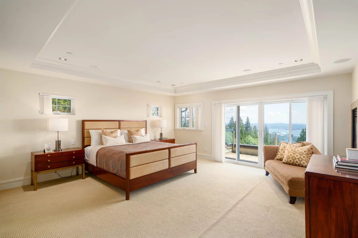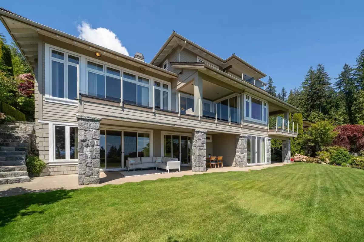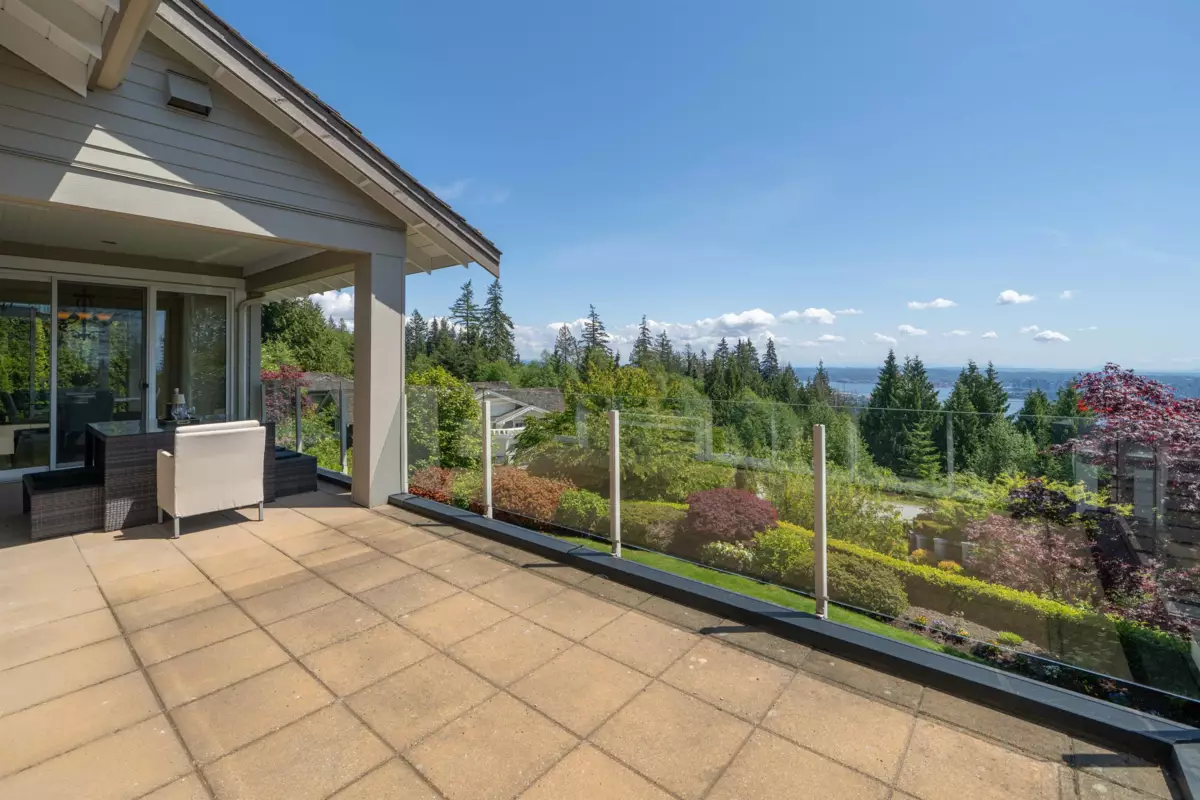 Perched in a prime Whitby Estates cul-de-sac, this beautifully maintained custom-built home offers unobstructed panoramic ocean, city and Lions Gate Bridge views from all 3 levels. Features include a heated driveway, home office, spacious recreation/media room, security system, built-in vacuum, sound system, and top-tier Viking & Wolf appliances.The upper level showcases a grand primary suite with spa-like ensuite, while the lower level offers 3 ensuite bdrms, perfect for family and guests. Multiple patios and balconies invite you to enjoy breathtaking sunsets & city lights year-round. Ideally located minutes to Collingwood, Mulgrave, and within the sought-after Chartwell Elementary and Sentinel Secondary catchments. private, and offering truet West Van luxury living at its finest!