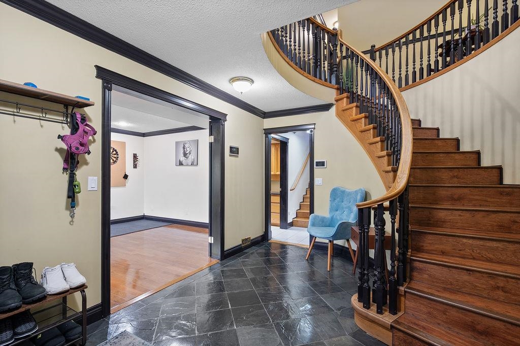 This beautifully maintained 4-bedroom, 3-bathroom home sits on a generous 9200 sq. ft. lot, offering comfort, space, and charm with a new furnace, AC, and newer roof. Upstairs features three bright bedrooms with scenic views of the greenbelt. The main level boasts a spacious family room and a well-appointed kitchen with elegant crown mouldings, flowing effortlessly into a private, custom-designed backyard retreat. Step outside to a covered patio, new deck, hot tub, and pergola with rotating slats for sun or shade. A peaceful upper gazebo is ideal for unwinding or entertaining. The lower level includes an office, 4th bed, full bath, and a theatre room perfect for movie nights or family fun. A 12x10 workshop attached to the garage offers extra space for hobbies or storage.