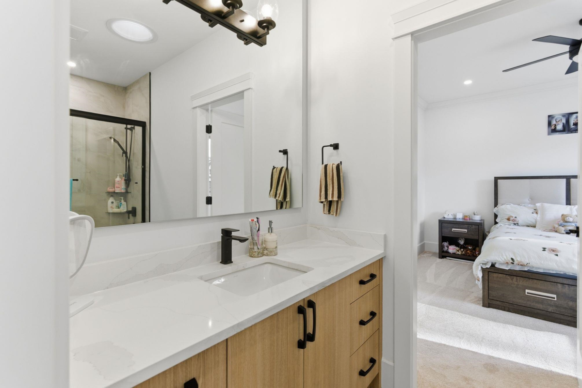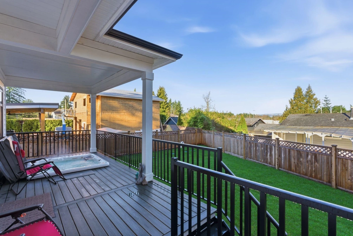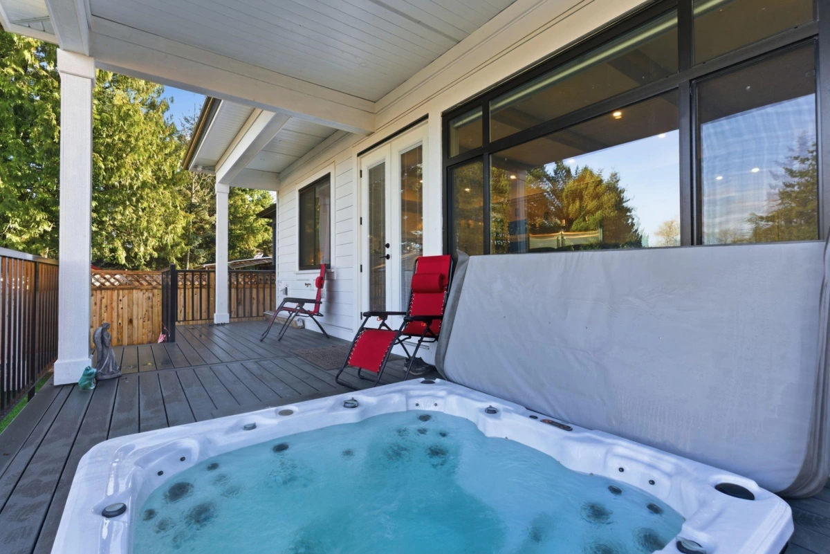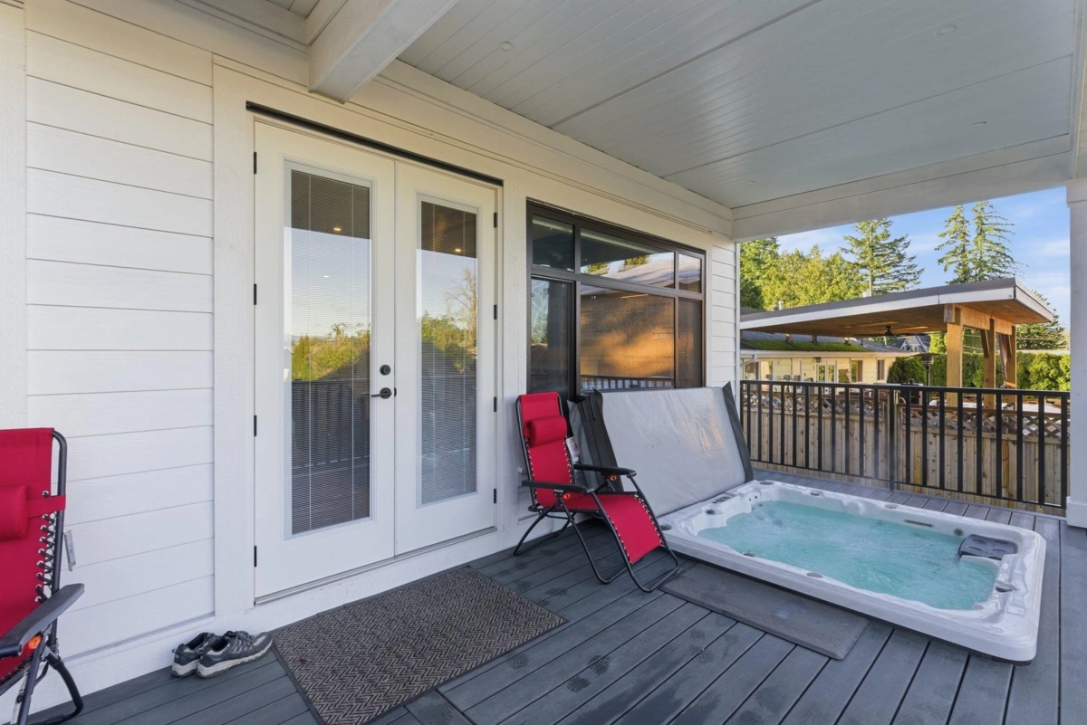 Built by English Willow! 1 Year New, single family, detached home located 5 mins from Murrayville. Beautiful great room-kitchen area, with white shaker style cabinets contrasted with white oak. Quartz counters with waterfall edges on the 7’x5’ island, Frigidaire Professional 36''gas range and industrial sidebyside fridge/freezer. S/S farm style sink. An oversize 60"linear gas fireplace, surrounded by overgrouted stone, white oak mantle and moody Iron Ore paint creates a one of a kind great room. Four large bdrms up, all with ensuite access. Primary bdrm with walk in closet and 5piece ensuite with soaker tub and frameless glass steam shower. Bonus open/flex room up, perfect for the kids to play.270sqft covered deck with composite decking and HOT TUB included,A/C,balance of 2-5-10 Warranty!