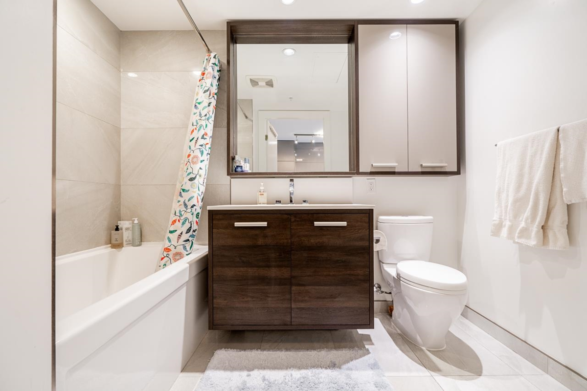 Welcome to your new home in vibrant Brentwood! This beautifully designed 1-bed, 1-bath condo by Solterra offers luxury living with high-end finishes, air conditioning, and a spa-like bathroom with radiant floor heating. The European kitchen features quartz counters, premium appliances, and a versatile island with a pull-out dining table. Step onto your spacious balcony and enjoy breathtaking city and mountain views. The building boasts top-tier amenities: concierge, gym, hot tub, steam room, party room, outdoor lounge, and even a putting green! Just a short walk to SkyTrain, shopping, dining, and parks, this bright and airy home is move-in ready—perfect for first-time buyers or investors. Includes 1 parking and 1 storage. Don’t miss out-call now for your private showing.
