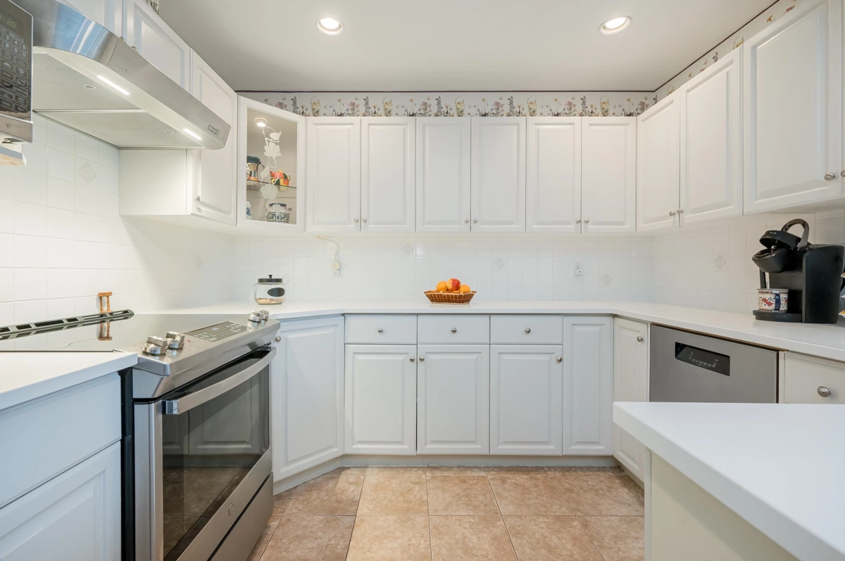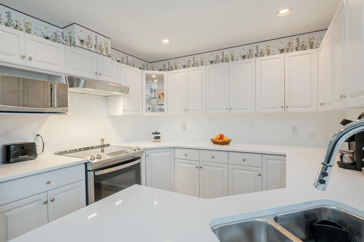 Incredible opportunity - buy this updated 2 bed, 2 full bath Townhouse in Chelsea Gardens could be fully furnished including household appliances and contents of cupboards - EVERYTHING, seller moving to independent living.One occupant must be 55+ and 2 pets allowed max 15" at shoulder. This home is a bright end unit backing onto greenspace where you can hear the peaceful stream. Updates from 2025 include quartz countertops and u/c sinks in kitchen and 2 full baths, S/S fridge, stove, dishwasher, microwave and range hood, washer, dryer, European vinyl planking. $13,000 on demand hot water system and boiler in 2022 cuts heating bills in half. Chelsea Gardens boasts fireside room, English pub, library, gym, woodworking shop, 3 guest suites, hot tub, outdoor pool and RV parking (small fee).