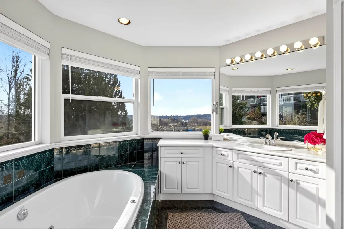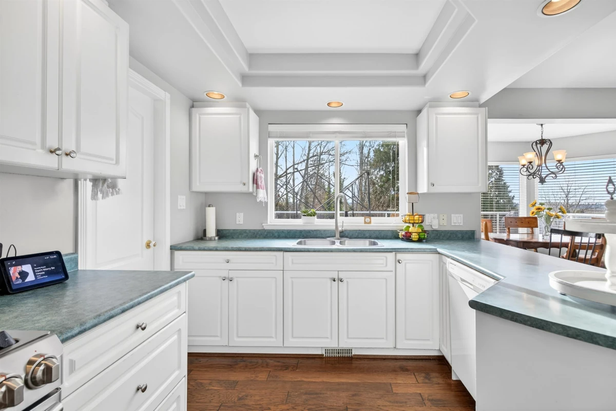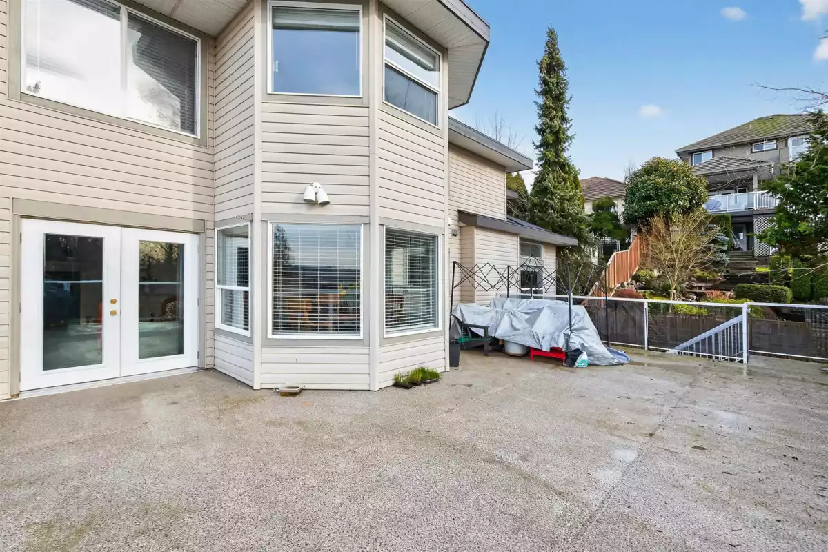 Perched at the TOP OF THE HILL with sweeping VIEWS of the Fraser River, mountains, and unforgettable sunsets, this residence offers a rare opportunity to create something truly exceptional. With only minimal updates needed, this home is poised to impress. The 2-storey plus walkout DAYLIGHT bsmt design blends elegance and functionality, perfect for multi-generational or blended living. The main level showcases engineered hardwood, a private office, formal living and dining rooms, and an open-concept kitchen/family space with a butler’s pantry. Step through French doors to an expansive entertainer’s DREAM DECK where you can soak in the southern rays and views. Upstairs features a 5-bdrm layout, bright 3-bdrm suite below offers luxurious comfort. A refined investment with endless potential.
