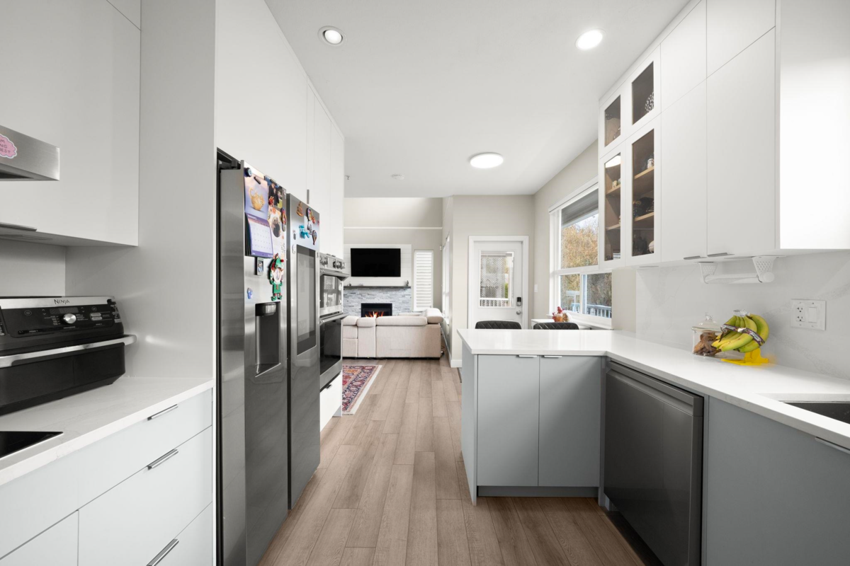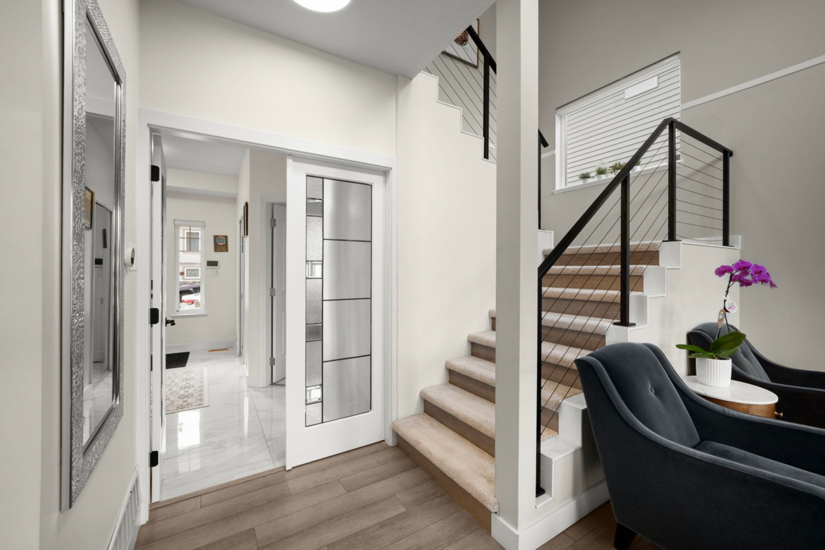 A beautifully renovated family home offering 6 beds & 4 baths. Updated upper level w/ new high-end silk carpeting, designer tile entry, modern metal railings, LED app-controlled lighting, and a fully remodeled brick fireplace. Renovated kitchen (approx. 2 yrs) w/ newer appliances. Hot water tank & furnace (4 yrs old) and A/C (2 yrs old). Walk-out renovated basement suite, an excellent mortgage helper. Fully landscaped backyard w/ synthetic turf, mature apple & pear trees, brand new fencing, and gazebo w/ gas fire table. Front yard features a low-maintenance rock garden. Heated garage w/ epoxy flooring, Tesla charger, gas BBQ hookup, and full security/alarm system. A must-see home on a quiet street. Book your private showing today!