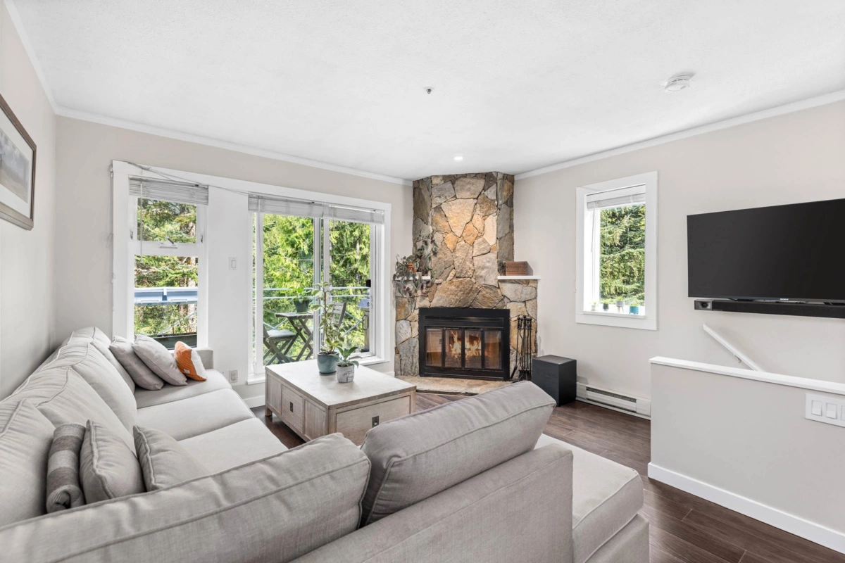 This tastefully updated 2-bedroom, 1.5-bath end-unit townhome offers views of Whistler Mountain along with a bright, functional layout and added privacy. The open-concept main living area benefits from extra windows, allowing for excellent natural light, and features stainless steel appliances, granite countertops, heated tile flooring, and a cozy wood-burning fireplace—perfect for relaxing after a day on the slopes. A standout feature is the over 300 sq. ft. of storage, ideal for all your Whisller gear. The location is hard to beat, just a short walk to the Creekside gondola, shops, Alpha Lake Park, and some of Whistler’s best biking and hiking trails. Enjoy unlimited owner use with the flexibility of nightly or long-term rentals. GST is not applicable.