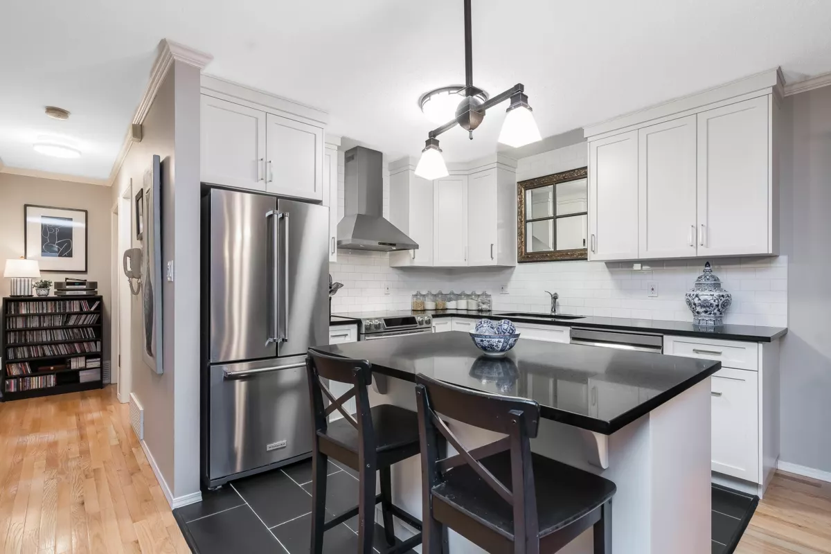 Updated 3-bdrm, 2-baths townhome offers 1,657 sq ft of comfortable living in a well-run, family-friendly complex. Centrally located and within walking distance to schools, parks, shopping and restaurants. The main floor features two large bedrooms, renovated bathroom, and a beautifully updated kitchen that is open to the bright living and dining areas, creating a spacious, open-concept. Step outside to the large, fenced south-facing yard—perfect for summer BBQs and outdoor enjoyment. A hard top gazebo shelters a 10 ft-12 ft patio. Below, you’ll find a generous family room, a third bdrm, an updated bath and a laundry room. Easy parking for 2 cars and plenty of storage throughout. Central A/C keeps the home cool in summer, while the wood-burning fireplace adds warmth and charm in winter.