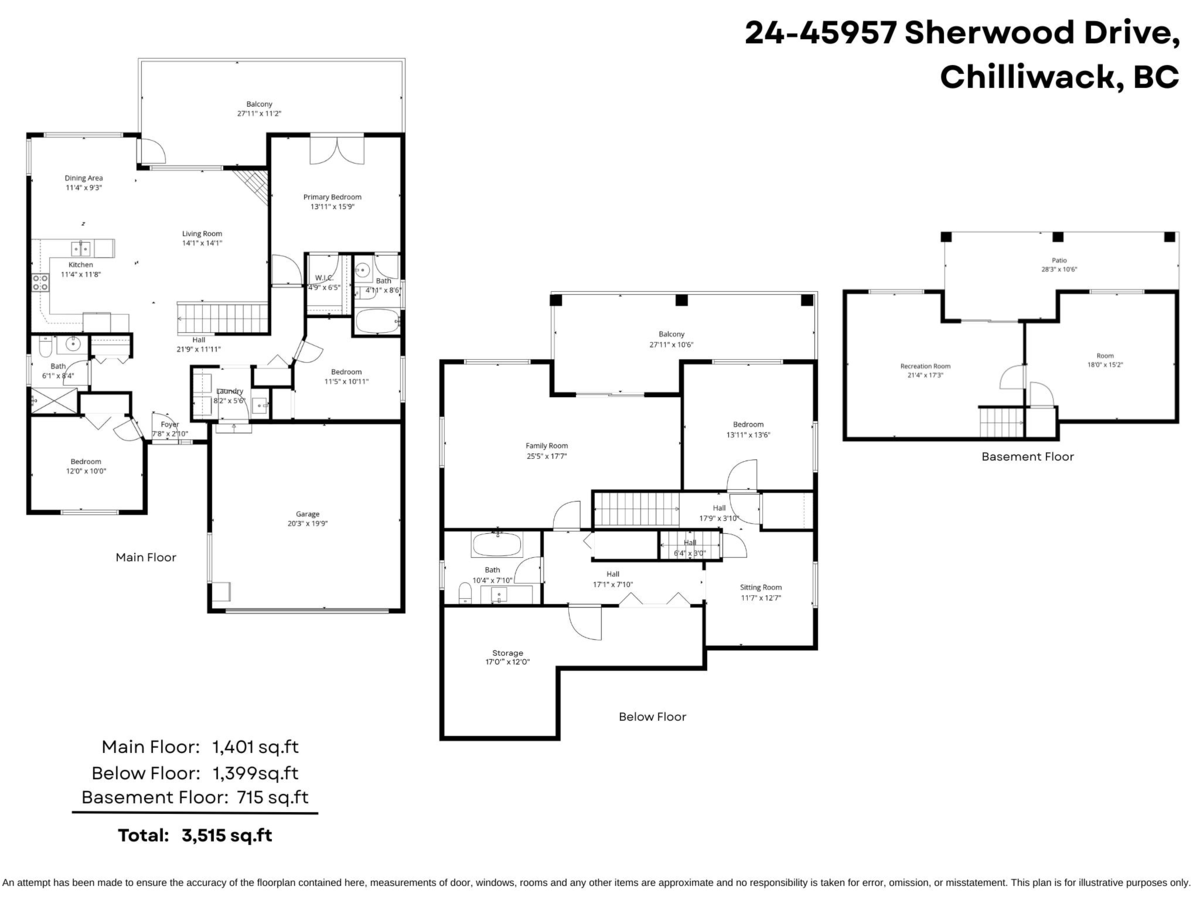 | Main Level | Living Room | 14'1 x 14'1 ft |