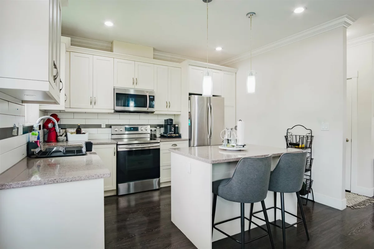 Welcome to the Redwood complex in East Newton, one of Surrey’s most desirable neighbourhoods. This stunning corner unit townhouse offers 1,938 sqft with 4 spacious bedrooms and 3 bathrooms, perfect for families or those needing extra space. The open-concept main floor features a modern kitchen with ample cabinetry, generous dining and living areas, and large windows that bring in natural light. Surrounded by lush greenery, the home offers a private and peaceful setting while being steps from top schools, parks, shopping, and transit. Discover stylish, comfortable living in a vibrant community, with the added bonus of plenty of side street parking right at your doorstep for everyday convenience making daily living and hosting friends and family effortless.