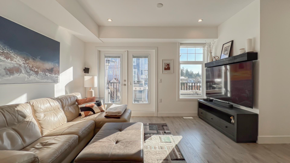 MOTIVATED SELLER & PRICED TO SELL well below Assessment! This LUXURY END UNIT home, shows like NEW. 2,318 SF of modern living w/ 4 beds, 4 baths, Open concept main floor with Large Living & Dining Area, Family Rm, HUGE Quartz Island, walk-in pantry, chef-inspired kitchen w/Gas Stove. Large, fully fenced yard, plus 2 balconies with south-facing deck with BBQ gas hookup. Upstairs has 3 generous size beds, w/Primary feat. walk-in closet, his/her sinks & massive 6 pc spa-like ensuite, Double sink in Main Bath & full laundry area. BONUS: Separate entry to INDEPENDENT LIVING AREA w/Rec Rm, Bedroom & Full Bath perfect for extended family or Nanny. Side by Side Garage + 2 on driveway, all in a cool comfortable A/C Home. Minutes away to Shops, Highways, Buses & top schools: SEAQUAM (IB). Pets OK.