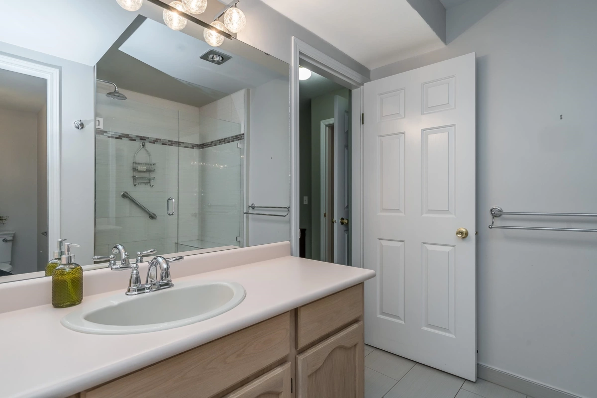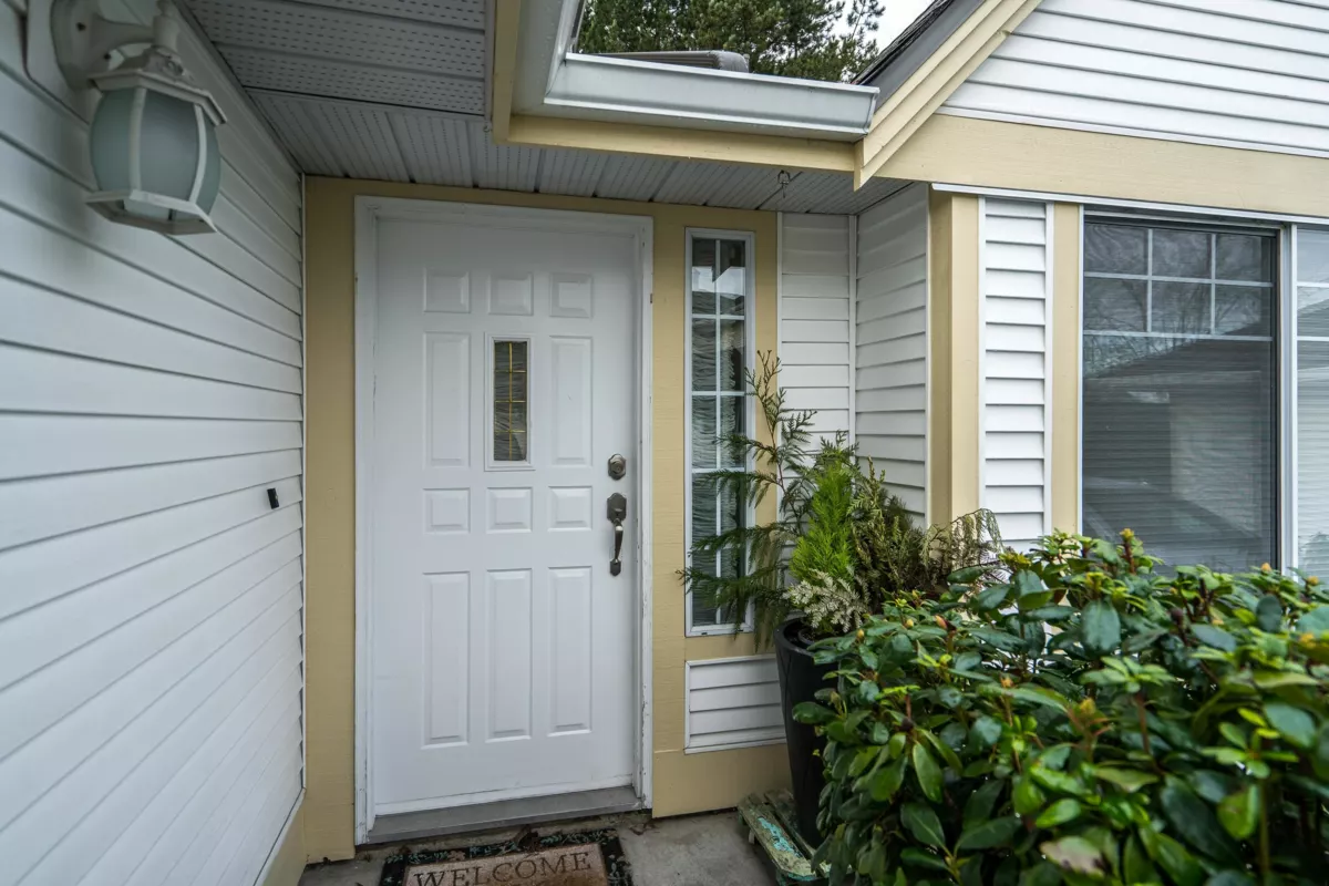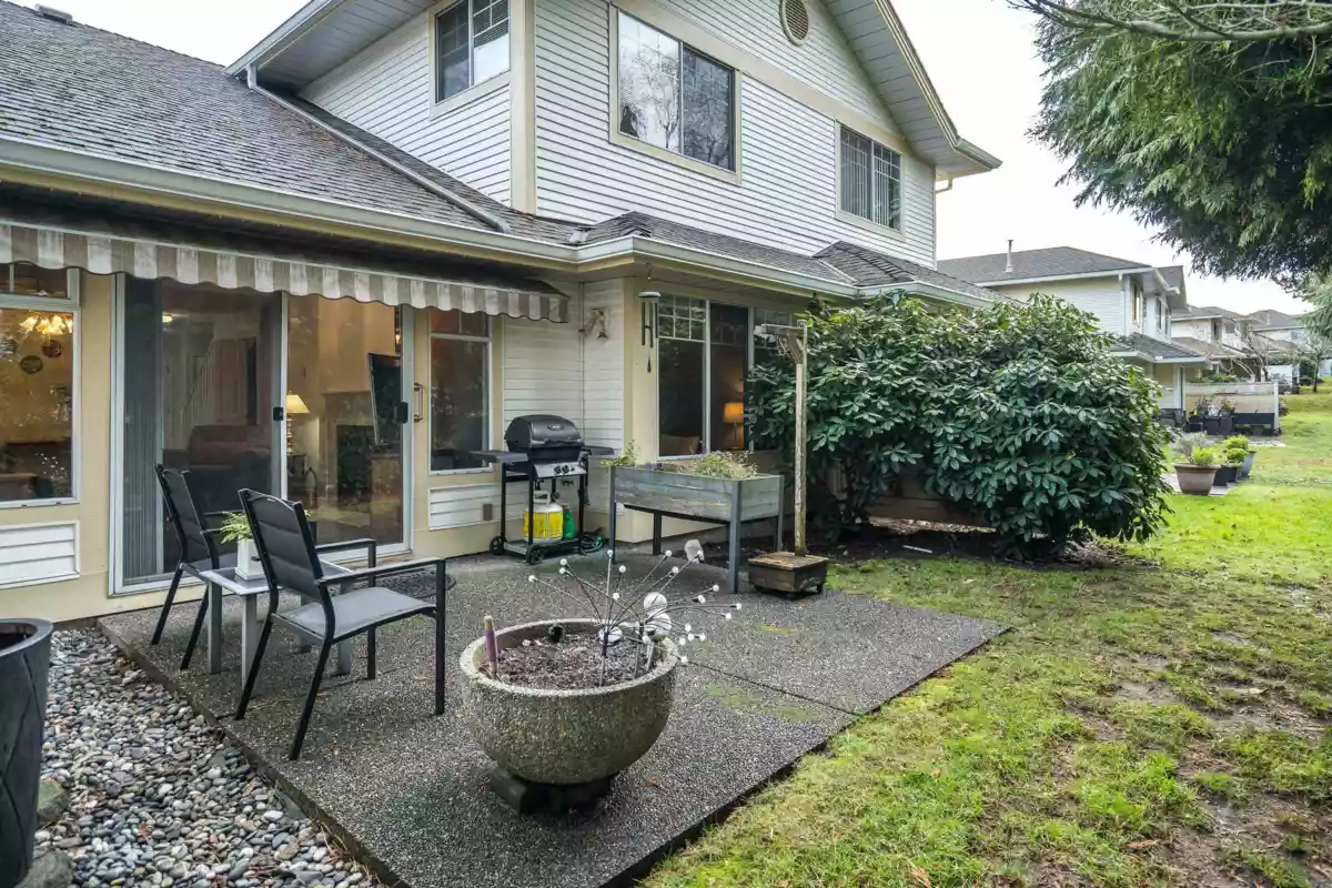 PREMIER 55+ "Chartwell Green" in heart of Walnut Grove! Main Floor PRIMARY bedroom has large walk in closet & ensuite with fully renovated shower! 1447Sqft 3 bdrm, 2 bath w/soaring vaulted ceiling in the living rm/dining rm & gas fireplace. Enjoy the bright East facing kitchen with cozy eating area. Upstairs TWO more generous bedrooms for guests or office & full bath! Private backyard w/awning for entertaining. Recent upgrades include blinds, vinyl flooring, gas fireplace, paint, toilets & taps. Single Garage + Parking space out front! Relax w/ resort like amenities incl, outdoor saltwater pool, hot tub, games room, active clubhouse, workshop, library & RV parking. Pets welcome (16") w/restrictions. Short walk to shopping centre, restaurants, banks, more. Book to view today!