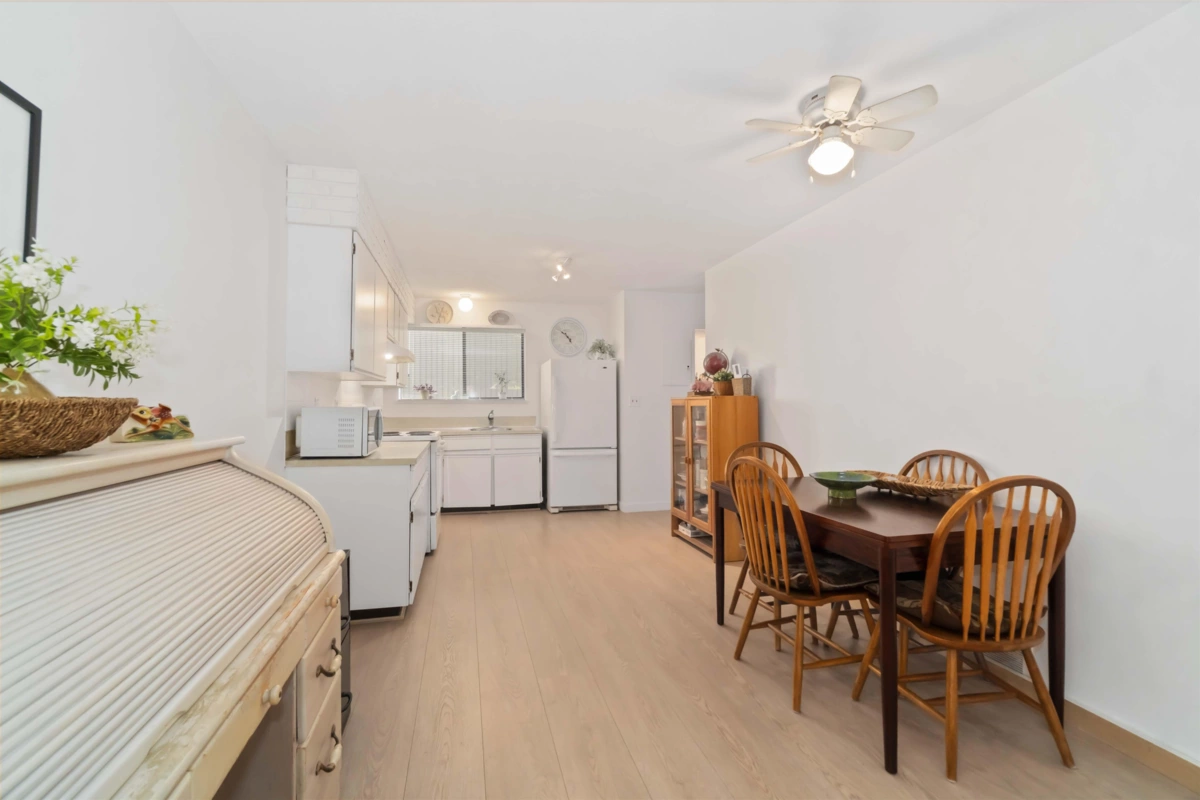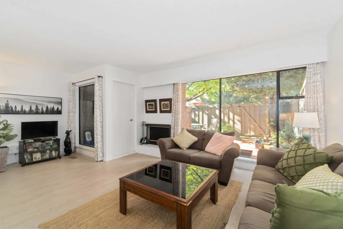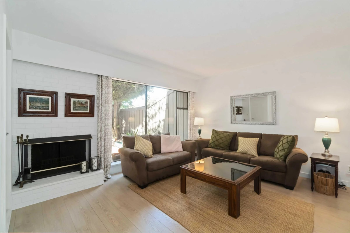 Welcome to Sharon Gardens in Central Richmond. This bright and inviting 3 BED + DEN, 2 BATH two-level townhome features a spacious open floor plan with updated laminate and carpeting throughout. The living area offers a cozy WOOD-BURNING FIREPLACE for relaxing evenings. Upstairs features VAULTED CEILINGS with a clerestory window that fills the home with natural light, plus a PRIVATE PATIO off the primary bedroom overlooking greenery. Enjoy a bright kitchen, a skylight in the upstairs bathroom, and a LARGE FENCED BACKYARD ideal for entertaining. Includes TWO SIDE-BY-SIDE PARKING SPOTS just steps from the unit. Well-maintained complex with OUTDOOR POOL, GUEST SUITES, WORKSHOP & GYM. Family-friendly location near parks, schools, shops & transit. OPEN HOUSE SAT OCT 11 2–4PM & SUN OCT 12 1–3PM