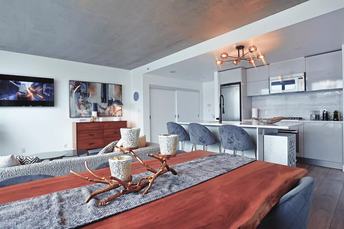 Discover unparalleled luxury in this exquisitely renovated Woodwards building apartment, offering breathtaking panoramic views. This 2-bed, 2-bath home, remodeled last year with over $100,000, showcases elegance with high-end finishes, stainless steel appliances, and a spa-like master bath. Enjoy rooftop amenities, including a lounge, fitness center, hot tub, and more. Located in vibrant Gastown, close to transit and dining, and now Airbnb-permitted, this property combines sophisticated living with significant cash flow potential.