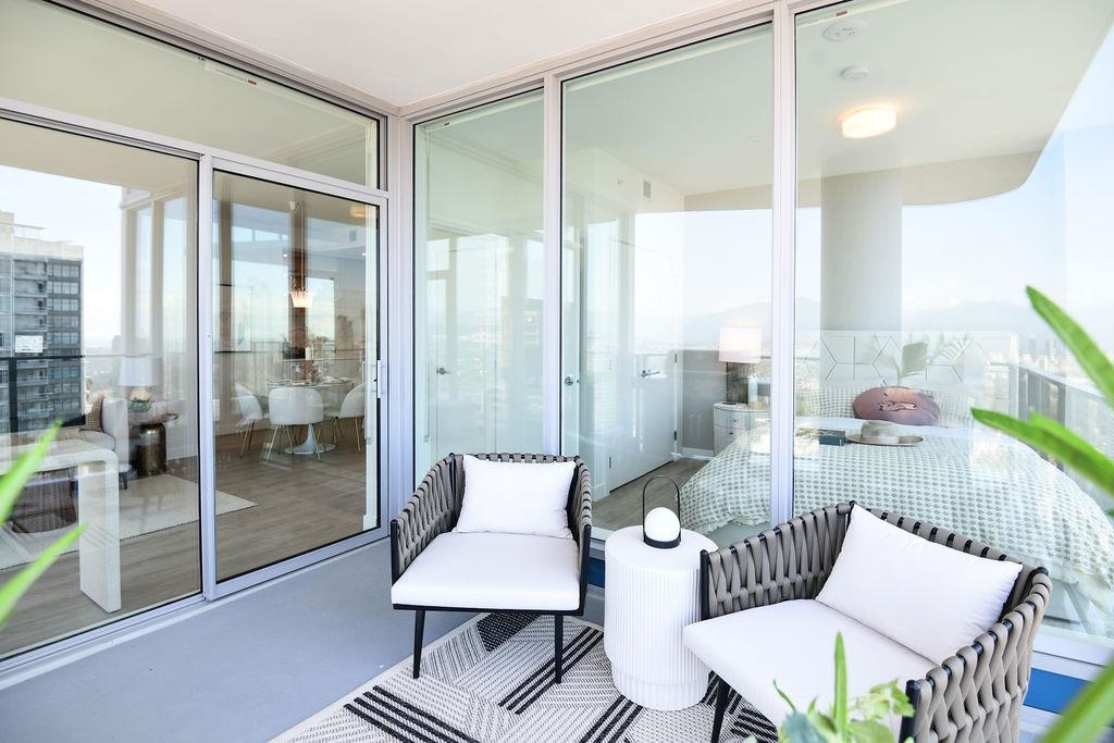 Step into this thoughtfully designed 2-bedroom home where the entry opens into an oversized kitchen with ample storage and a dedicated dining area, perfect for hosting. The well-separated bedrooms offer balance and privacy, each featuring large closets and expansive windows. A generous balcony provides the ideal spot to enjoy morning coffee and sunrise views. Residents benefit from curated amenities including a Concierge, Guest Suites, Fitness Centre, Social Lounge, and Outdoor Terrace. Located steps from the vibrant shopping, dining, and entertainment of Metrotown, as well as the convenience of 2 SkyTrain stations, Riviera is the perfect combination of luxury and urban living. Quality built by Ledingham McAllister, BC's original home builder.