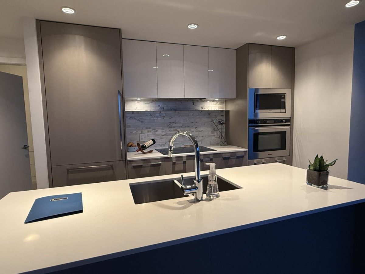 MC2 by Intracorp - Located in the heart of the Marine Gateway, this 2-bedroom, 2-bathroom home features a spacious open-concept layout with floor-to-ceiling windows. The elegant gourmet kitchen with a premium Blomberg appliance package, marble countertops, stainless steel appliances, and Jaga heating and cooling systems. View from mountains to the city. A fully equipped gym, rooftop deck, meeting room, and concierge service. Steps to the Canada Line SkyTrain and minutes to Richmond. Walk to T&T, Winners, Cineplex, Starbucks, restaurants, and more. Located within top-rated school catchments, including Sir Winston Churchill Secondary. All measurements approx. please verify if important. Viewing by appointment Includes: . 2 parking stalls (#116 & #117) . 1 storage locker (P2 - #142)