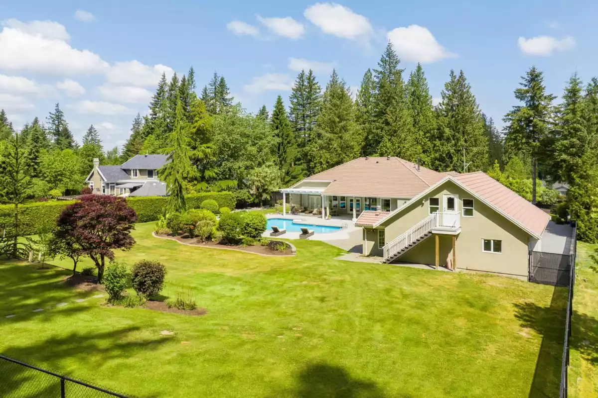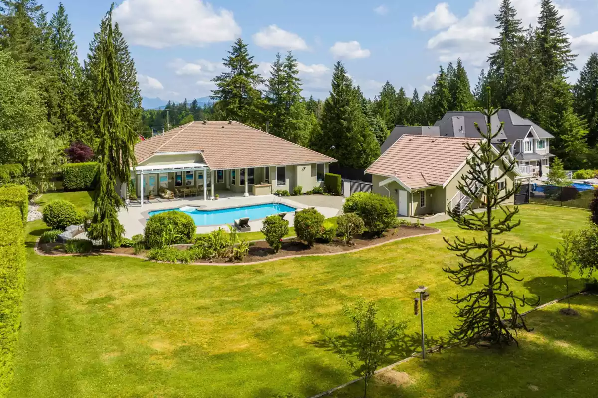 CUSTOM RANCHER IN SALMON RIVER | Extensively updated by Georgie Winning Homestar Homes, this stunning 7 bedroom, 4 bathroom, 5888 Sqft rancher w/ basement that has a self contained in law suite w/ separate entry and plumbed for a live in nanny suite, perfect for MULTI FAMILY LIVING. Attached is a triple bay garage + 1000 sqft detached garage. All on a gated, private and fully irrigated 1 acre lot w/ stunning mountain views, backing onto 55 acres of greenbelt! With southern exposure, the naturally lit 2944 sqft main floor boasts 14' ceilings, engineered Purparket oak floors, 4 bdrms, separate living and dining areas w/ a large open concept kitchen, loaded with commercial grade WOLF appliances, quartz countertops and solid wood cabinetry all walking out to your 2000 sq foot patio and pool.