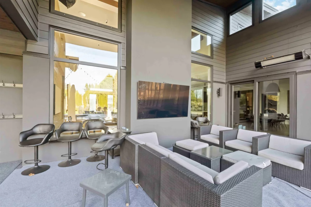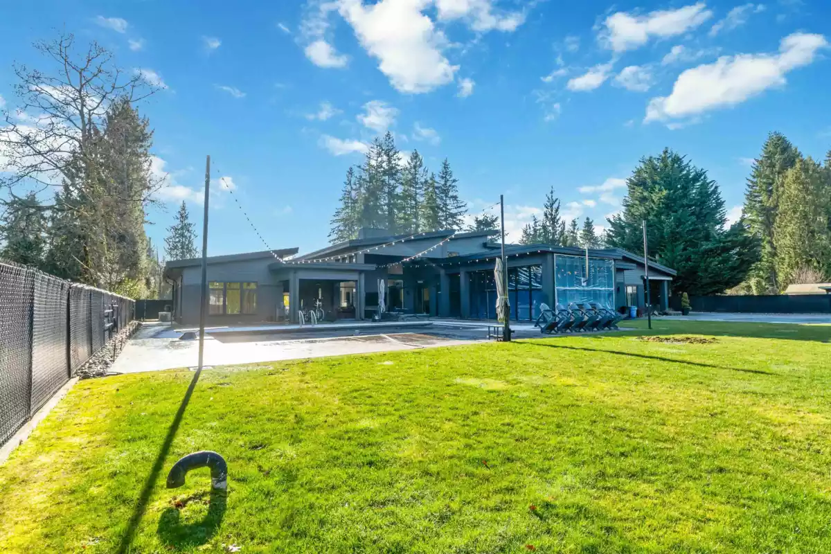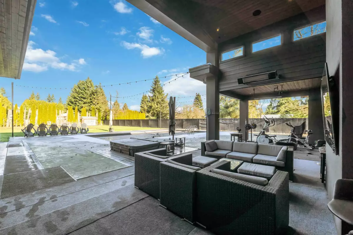 A truly rare West Coast Contemporary estate on 1.08 private acres offering over 8,300 sqft of refined living. This architectural showpiece features 7 beds & 9 baths, anchored by a designer chef’s kitchen w/ premium appliances & seamless indoor–outdoor flow. Entertain effortlessly in the resort-style outdoor living space w/ full kitchen, pizza oven, heaters & elegant lounge areas overlooking a custom pool, hot tub & outdoor shower. Main-level primary retreat boasts a spacious walk-in closet & opulent spa-inspired ensuite. Upstairs are 3 generous bedrooms, each w/ private ensuite, + a recreation room. Self-contained in-law suite offers 2 beds, 2 baths & private garage. In-floor heating throughout & detached garage w/ exclusive “man cave” completed this exceptional home—where luxury defines!!