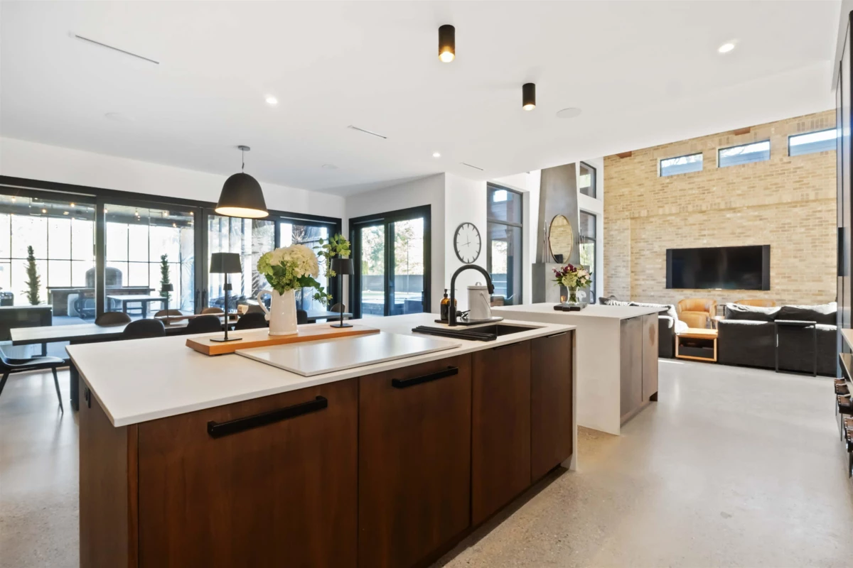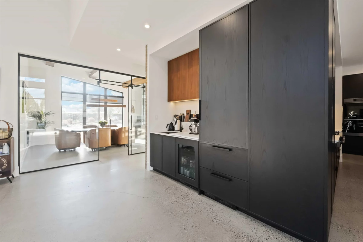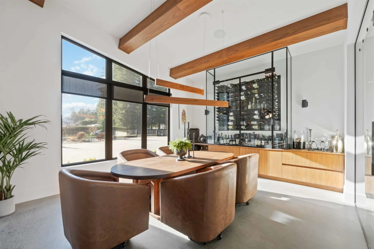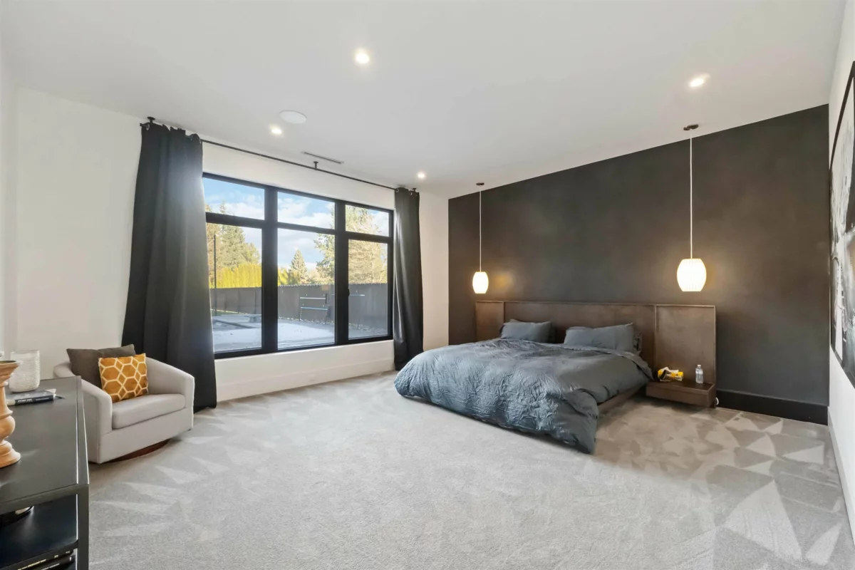 A truly rare West Coast Contemporary estate on 1.08 private acres offering over 8,300 sqft of refined living. This architectural showpiece features 7 beds & 9 baths, anchored by a designer chef’s kitchen w/ premium appliances & seamless indoor–outdoor flow. Entertain effortlessly in the resort-style outdoor living space w/ full kitchen, pizza oven, heaters & elegant lounge areas overlooking a custom pool, hot tub & outdoor shower. Main-level primary retreat boasts a spacious walk-in closet & opulent spa-inspired ensuite. Upstairs are 3 generous bedrooms, each w/ private ensuite, + a recreation room. Self-contained in-law suite offers 2 beds, 2 baths & private garage. In-floor heating throughout & detached garage w/ exclusive “man cave” completed this exceptional home—where luxury defines!!