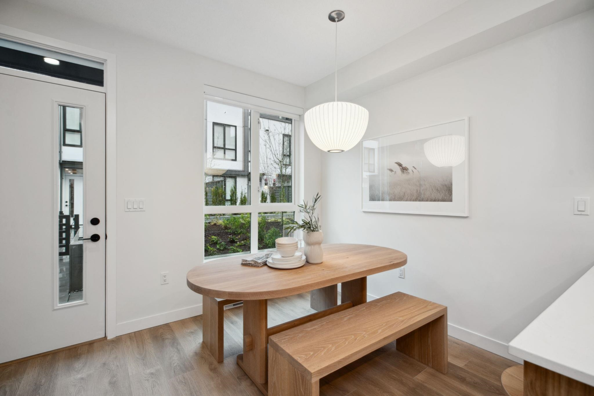 Welcome home to Dwell by Anthem. Located in a peaceful, family-oriented neighbourhood an 8 mins walk to the Burquitlam Skytrain, restaurants, shopping, parks, the new YMCA, and Mtn View Elementary School. Enjoy hosting gatherings with friends and family in your own club house and watch your children play in the playground. This spacious 1602 sqft 3 bedroom and den townhome with direct parkade access features your dream kitchen with designer appliances. The open-concept layout flows seamlessly onto a private patio where you can garden, entertain/host with your pets, friends/family gas bib incl. Upper level primary suite includes double vanity ensuite. Contact us to learn about current incentives. Open by appointment only.