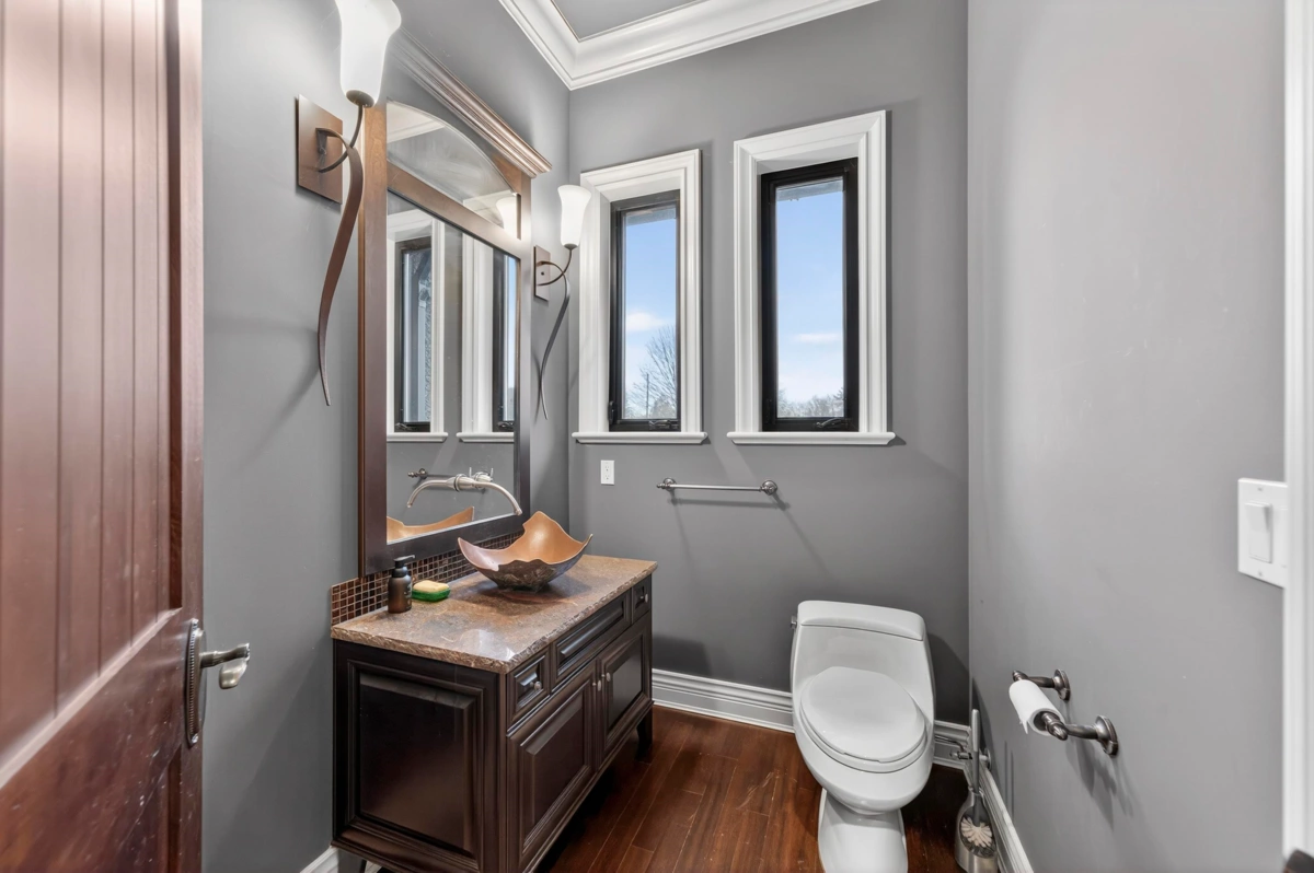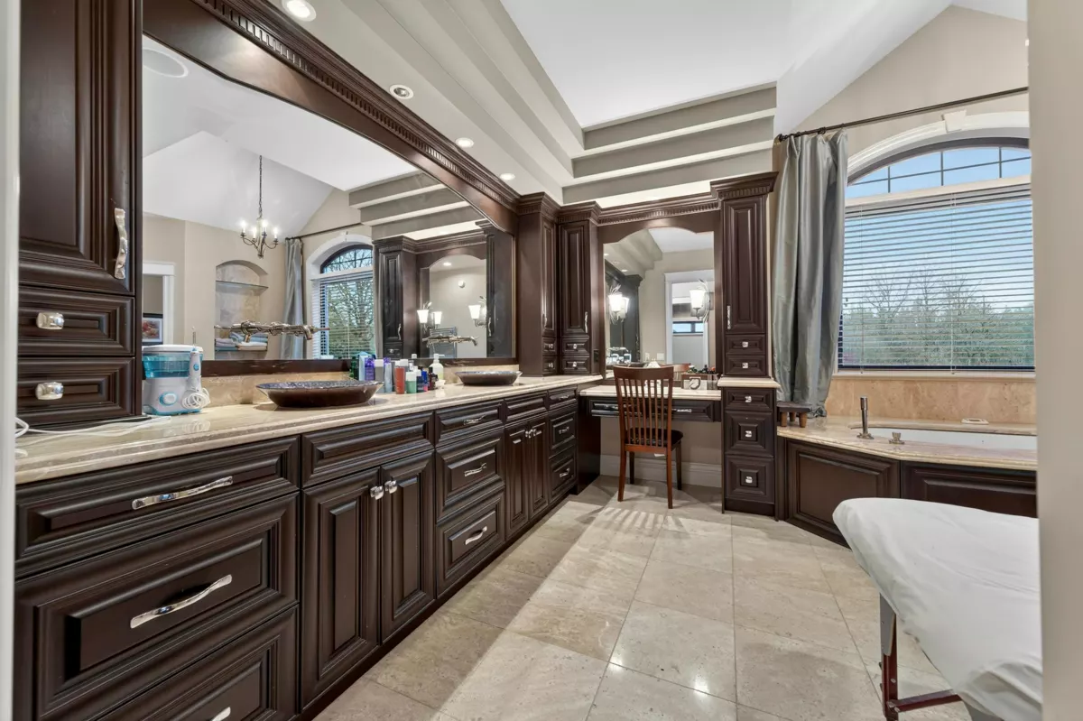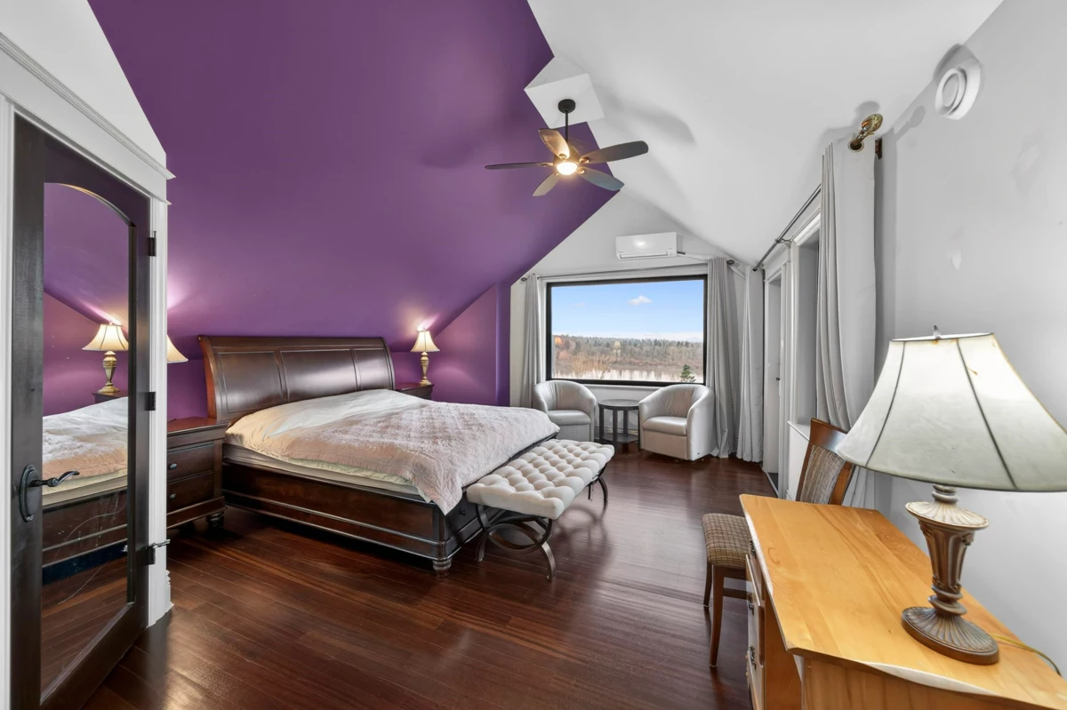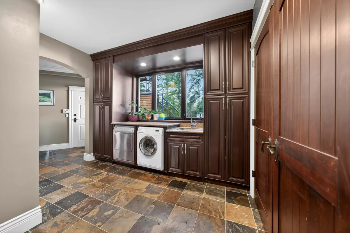 Set on approximately 2.5 acres with panoramic views of the Fraser River and surrounding mountains, this French-inspired estate offers over 7,300 sq.ft. of refined living. The home features four bedrooms, a den, and six bathrooms. Main living areas flow into a gourmet kitchen and butler's pantry with Spanish tile flooring, Italian blue marble countertops, a Viking professional six-burner gas cooktop with dual ovens, Sub-Zero refrigerator, and Miele dishwasher and coffee system. The main-floor primary suite offers walk-out access to the pool and hot tub, a walk-in closet, and spa-inspired ensuite. A triple garage with high ceilings includes a finished open space above. Manicured grounds feature a terrace, pool, outdoor kitchen, covered lounge, and built-in BBQ - ideal for entertaining.